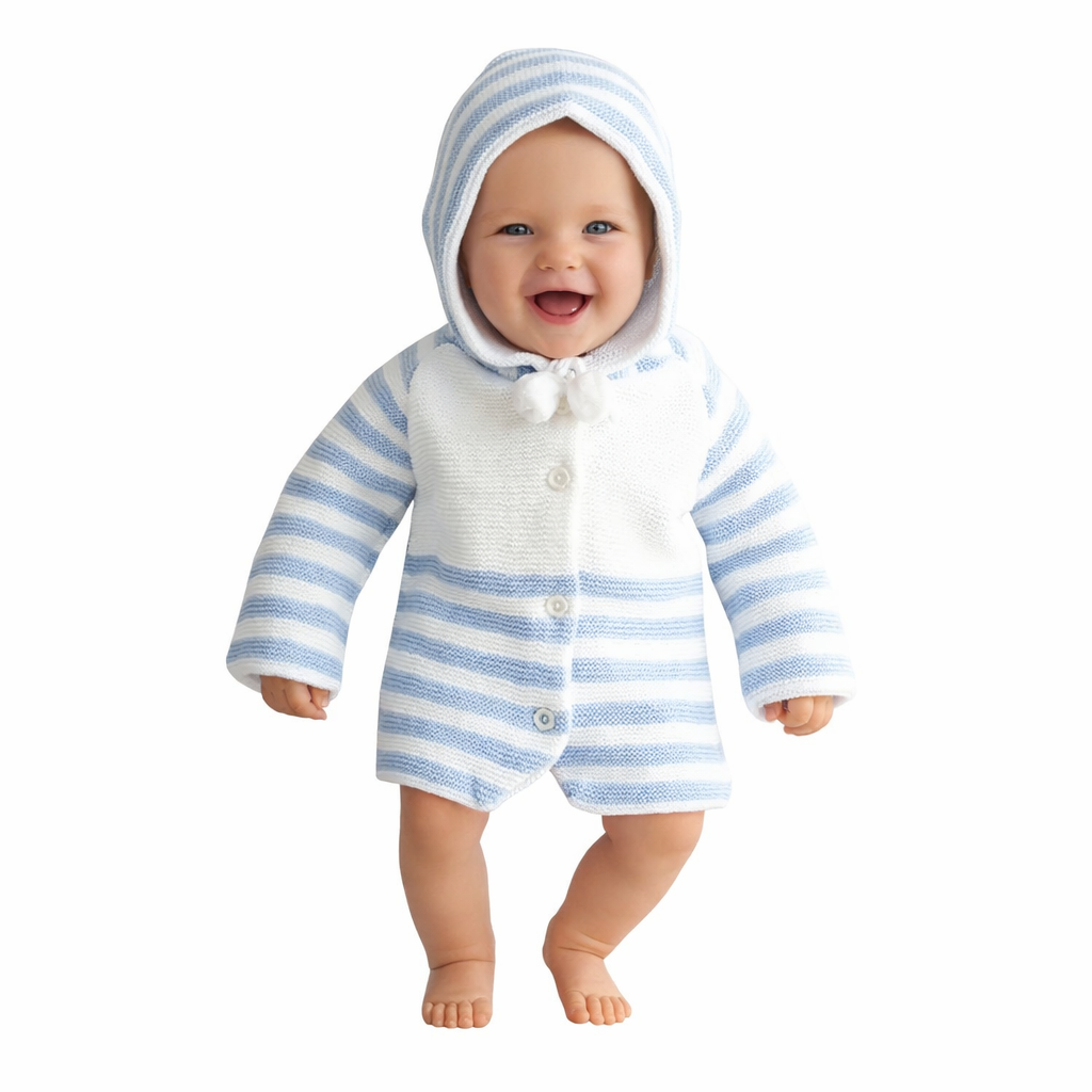 Mavi Çizgili Triko Bebek Hırka