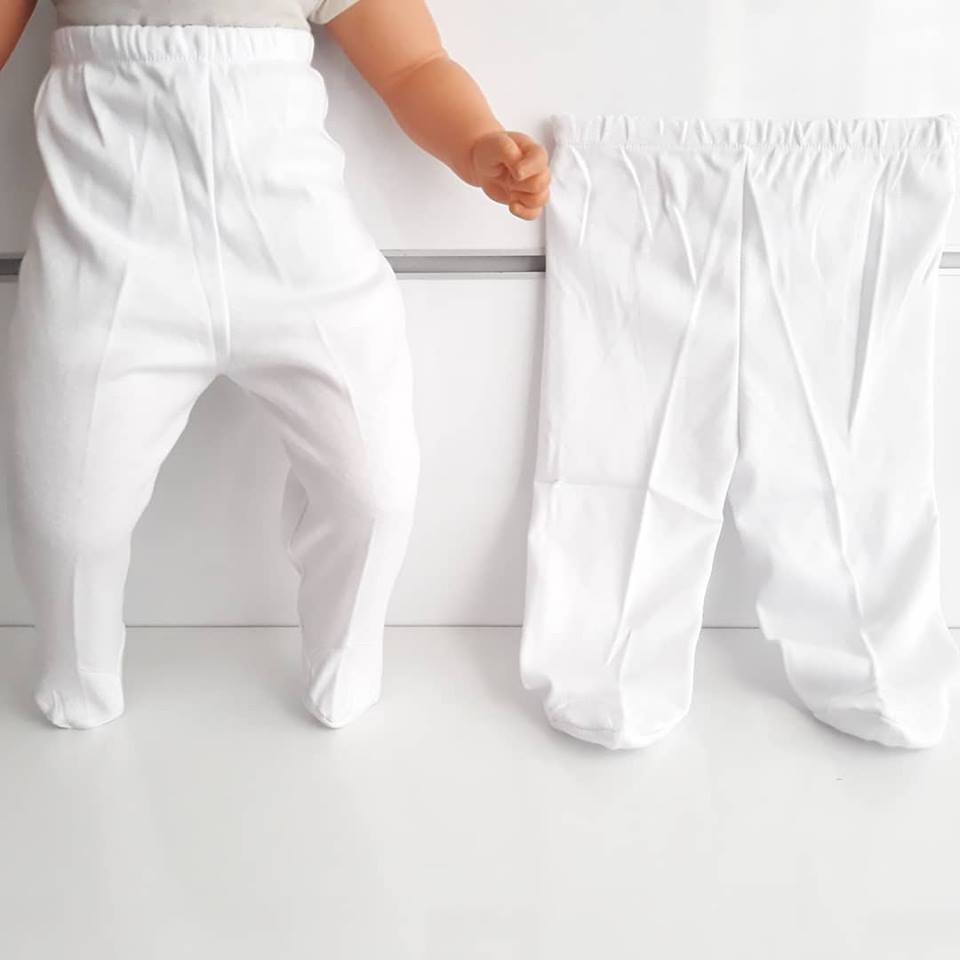 Patikli Beyaz Tek Alt Bebek Penye Pantolon