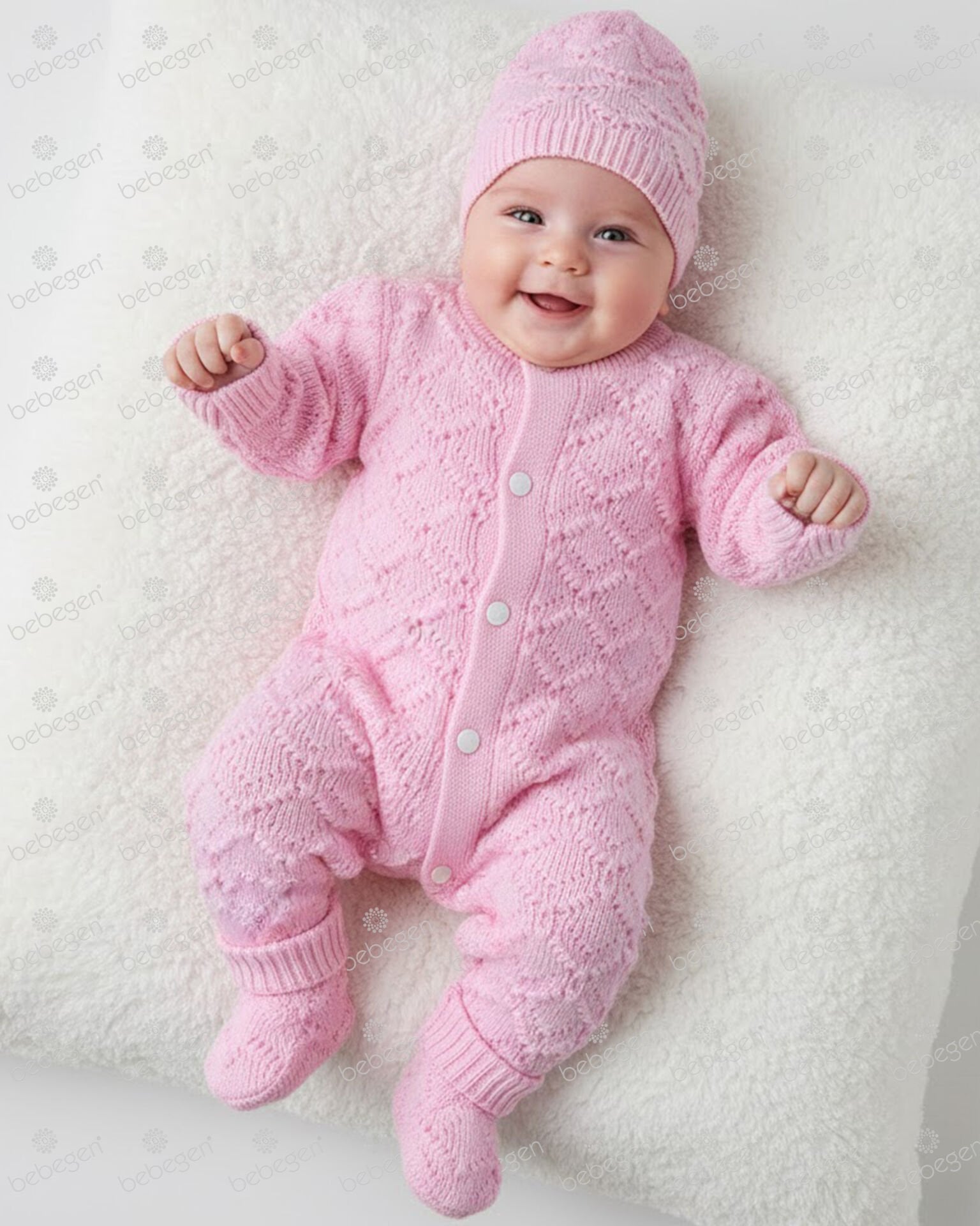 Pembe , Bereli Triko Kız Bebek Tulumu