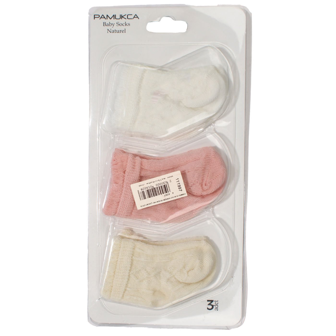 Pembe Beyaz Ekru Örgü Desenli 3'lü Çorap 0-6 Ay