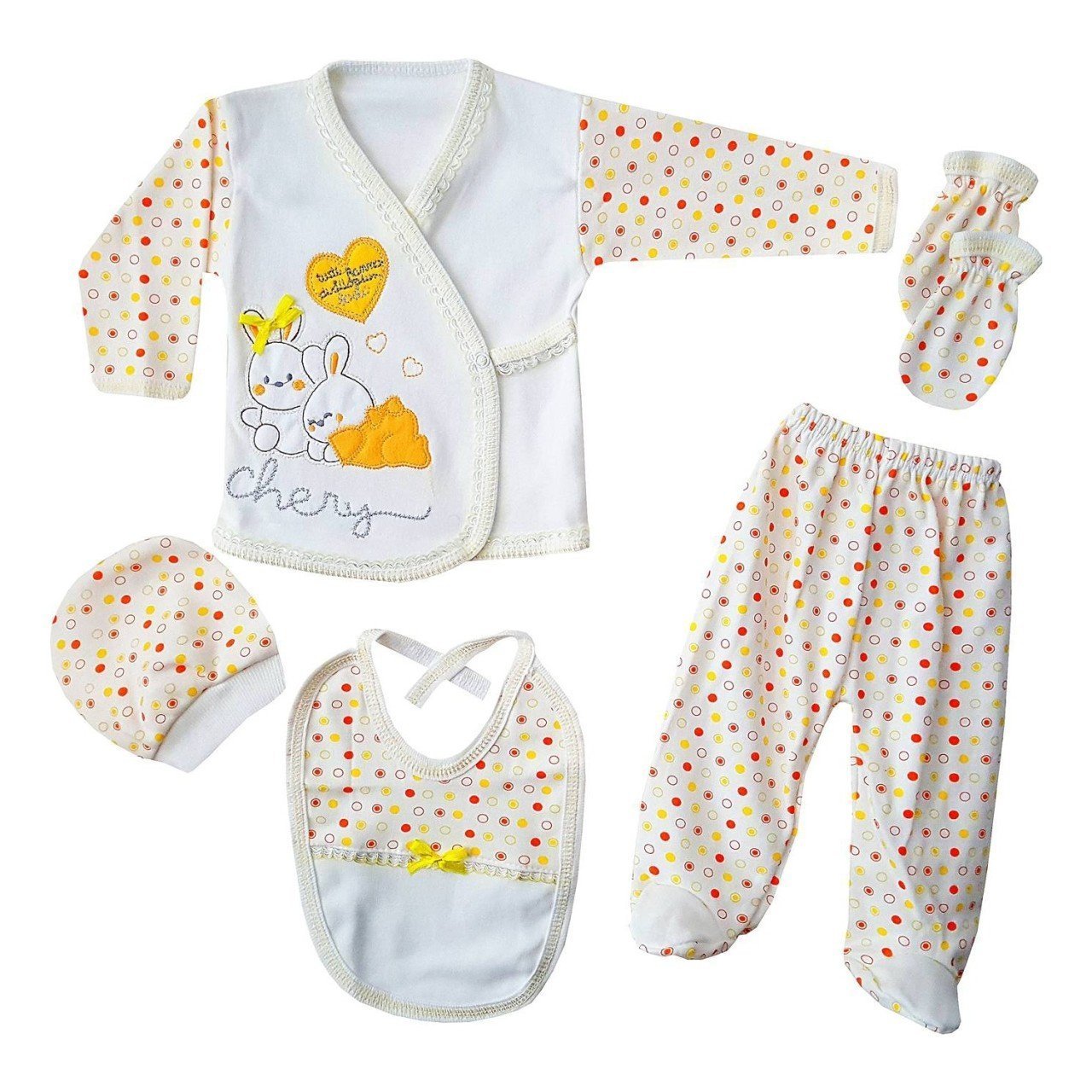 Chery Sarı Penye Tavşan 5 li Hastane Çıkış Bebek Takımı