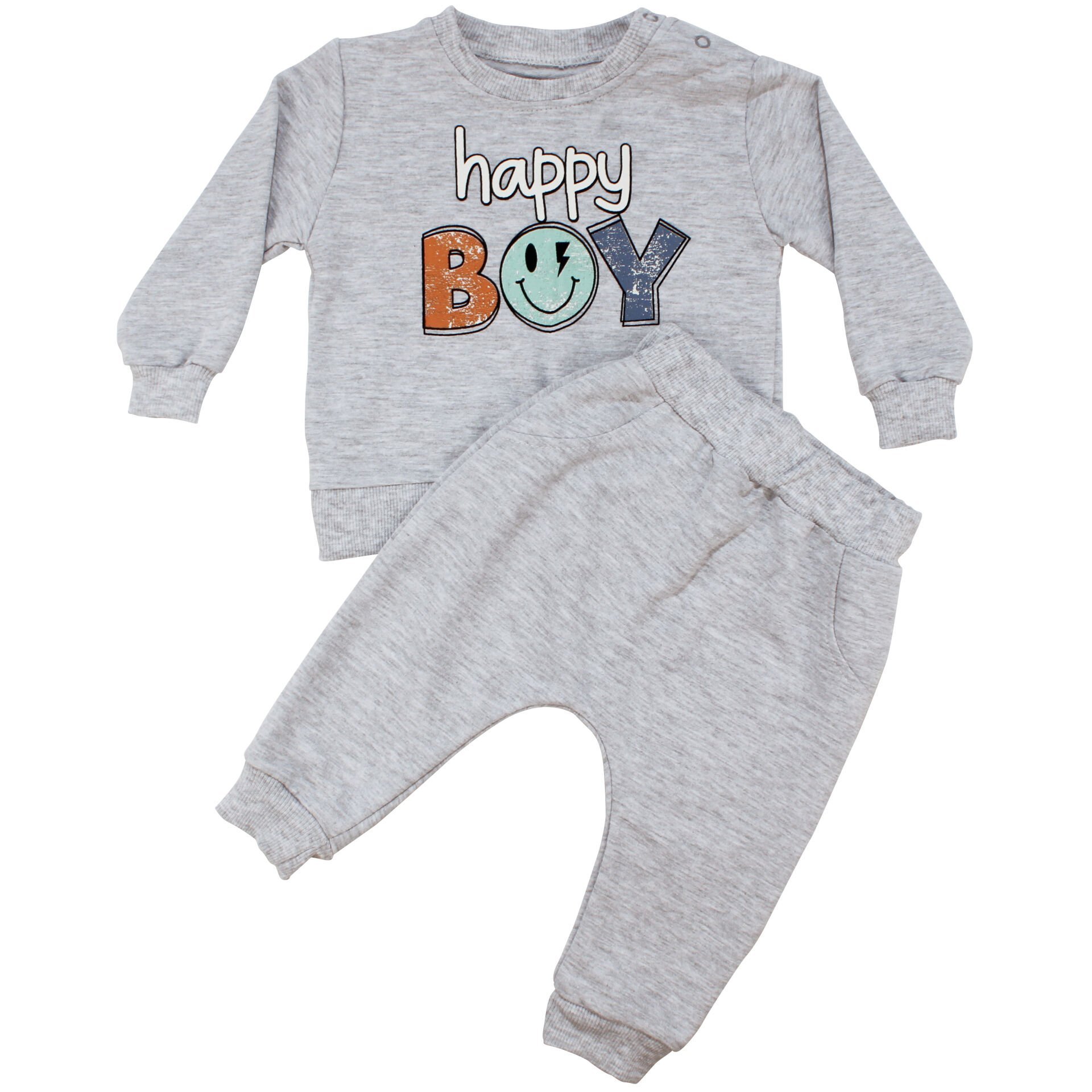Erkek Bebek Gri Happy Boy Yazılı 2'li Takım