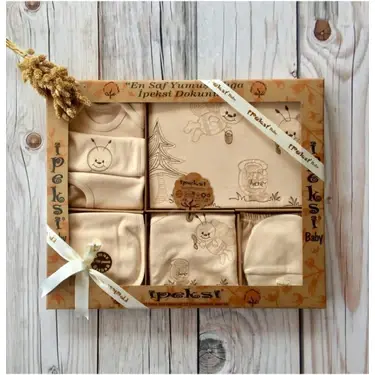 Sütlü Kahve Arı Nakışlı 11 Parça Hastane Çıkış Seti
