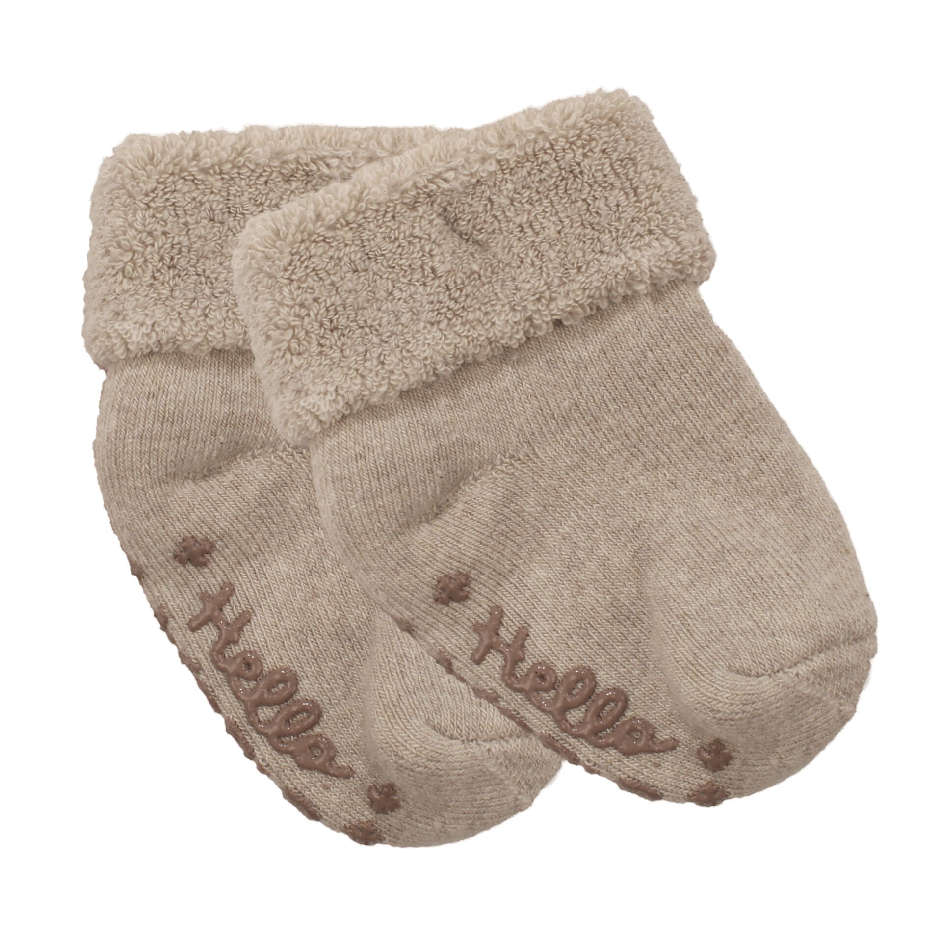 Unisex Bej Kıvrık Hello Kaydırmaz Taban Havlu Çorap