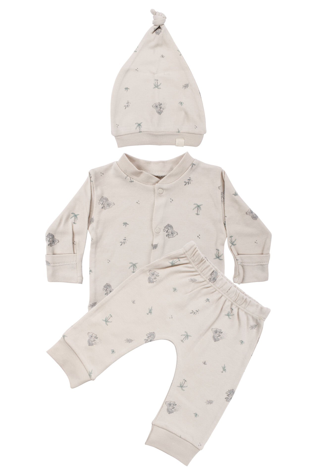 Unisex Bej Koala Desenli Organik Üçlü Pijama Takımı