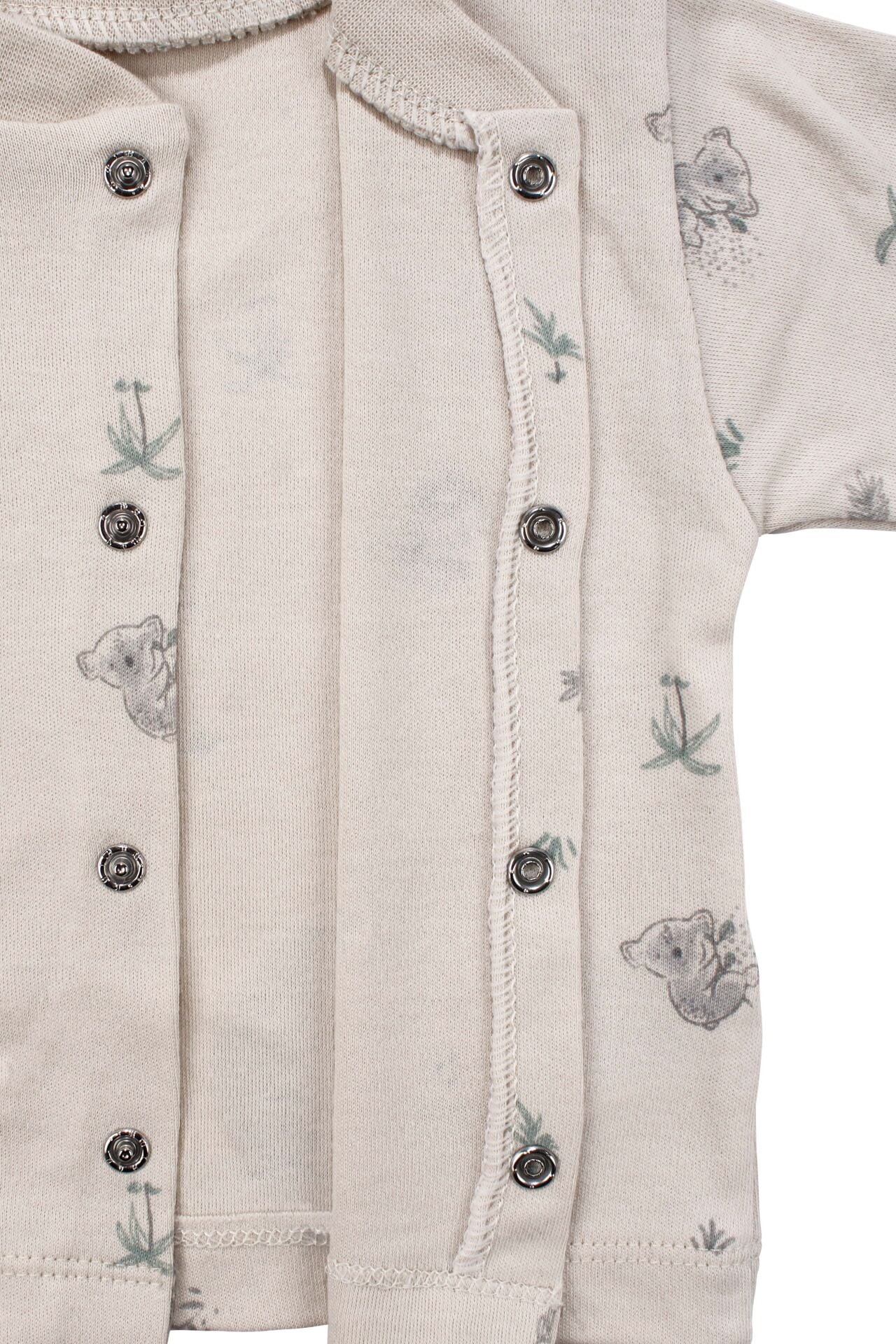 Yumuşaklığı, konforu ve sevimli tasarımı bir arada sunan bu unisex pijama takımı, bejn tonu ve koala desenleri ile uyku saatlerini daha keyifli kılar. Organik kumaştan üretilmiş yapısı, hassas ciltler için ideal olup cilt tahrişini en aza indirir. Üç parçalı set, bebeğinizin hem sıcak hem de rahat olmasını sağlar.