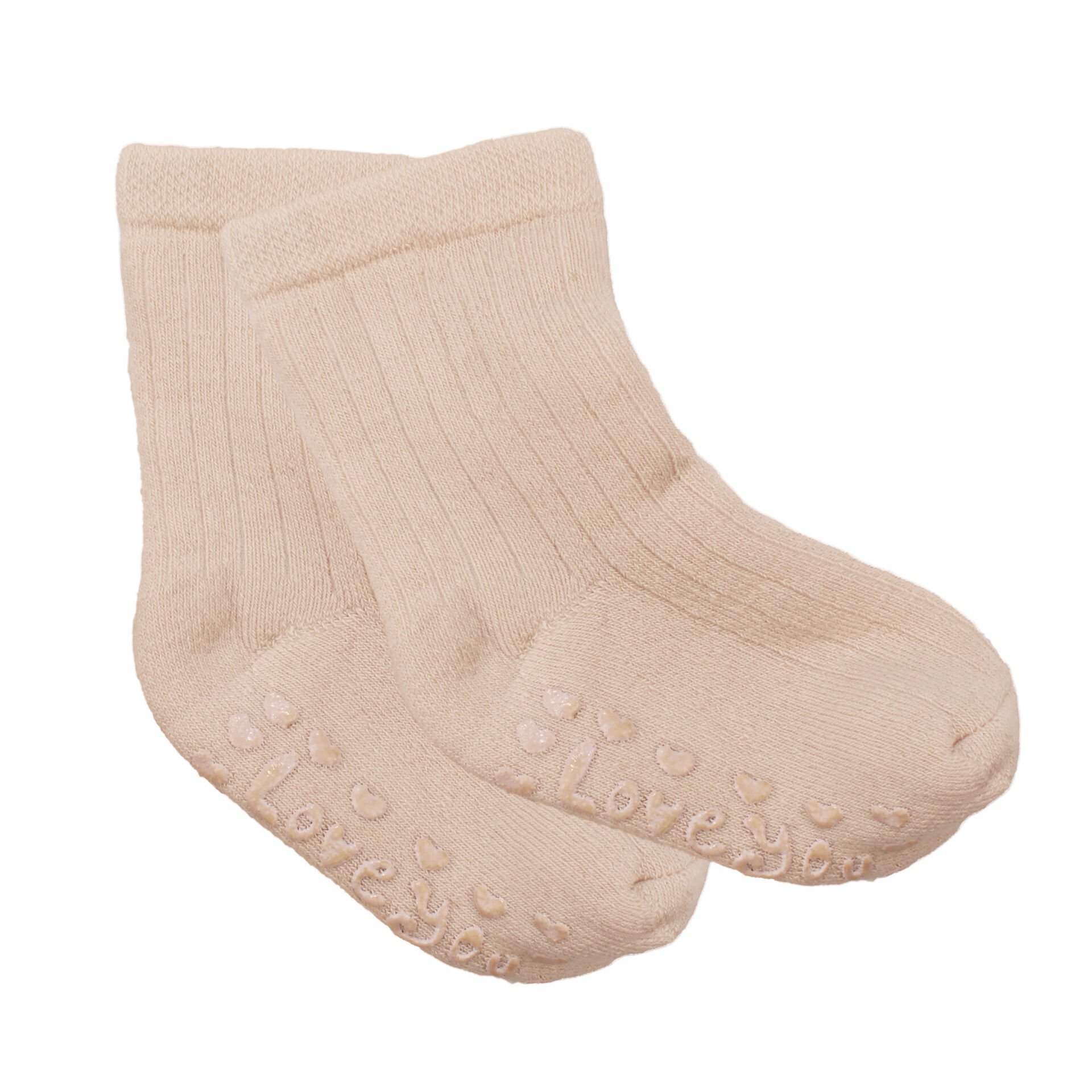 Unisex Bej Love Kaydırmaz Taban Polar Çorap