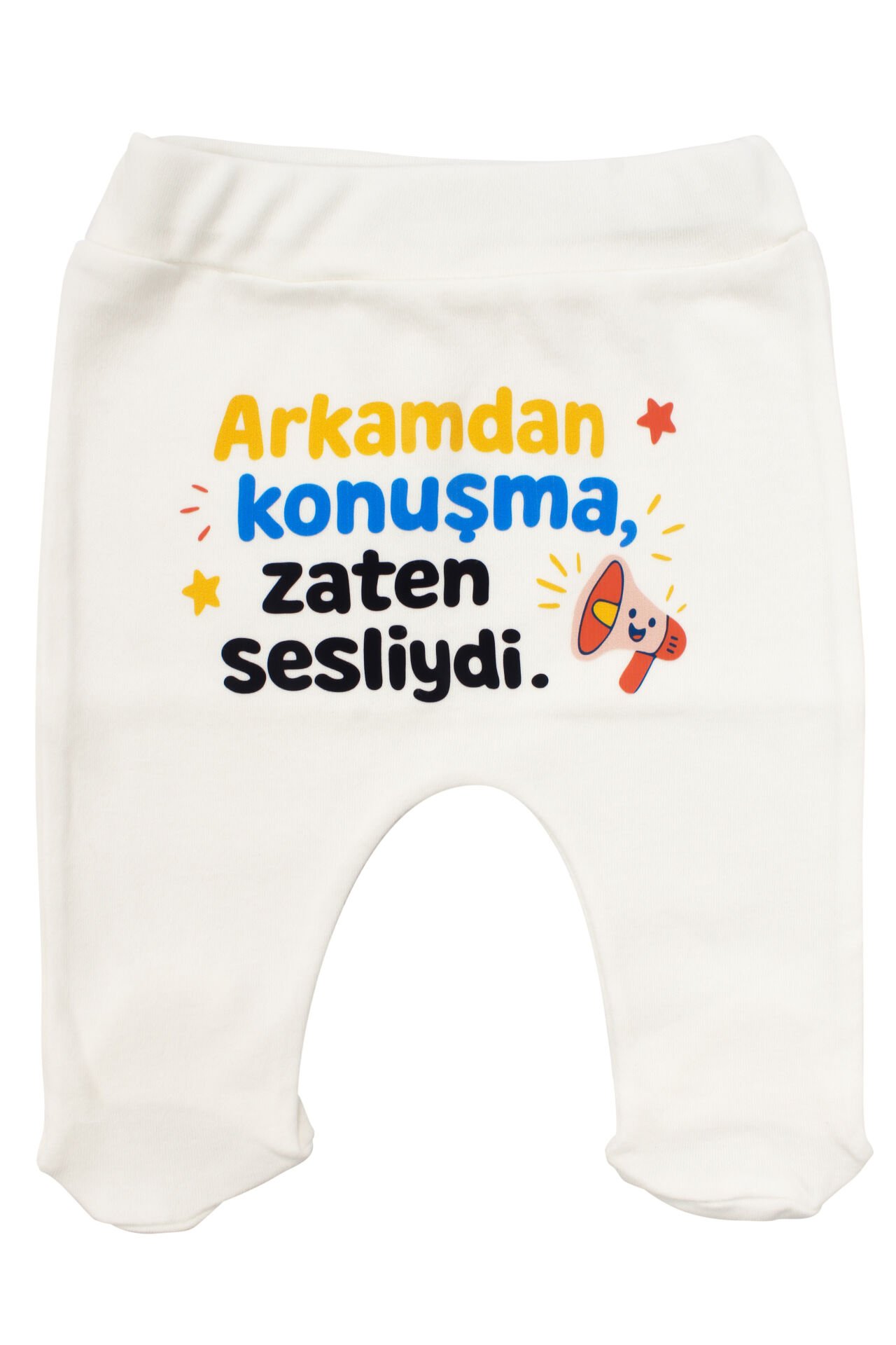 Rahatlığı ve esprili tasarımı bir arada sunan bu tek alt pantolon, ekru rengi ve “Arkamdan Konuşma Zaten Sesliydi” yazılı baskısı ile bebeğinize eğlenceli, modern ve konforlu bir görünüm sağlar. Patikli yapısı, minik ayakları sıcak tutarak ekstra rahatlık sunar ve günlük kullanımda hareket özgürlüğünü destekler. Yumuşak ve nefes alabilen kumaşı, hassas bebek cildine dost olup tahrişi azaltmaya yardımcı olur.