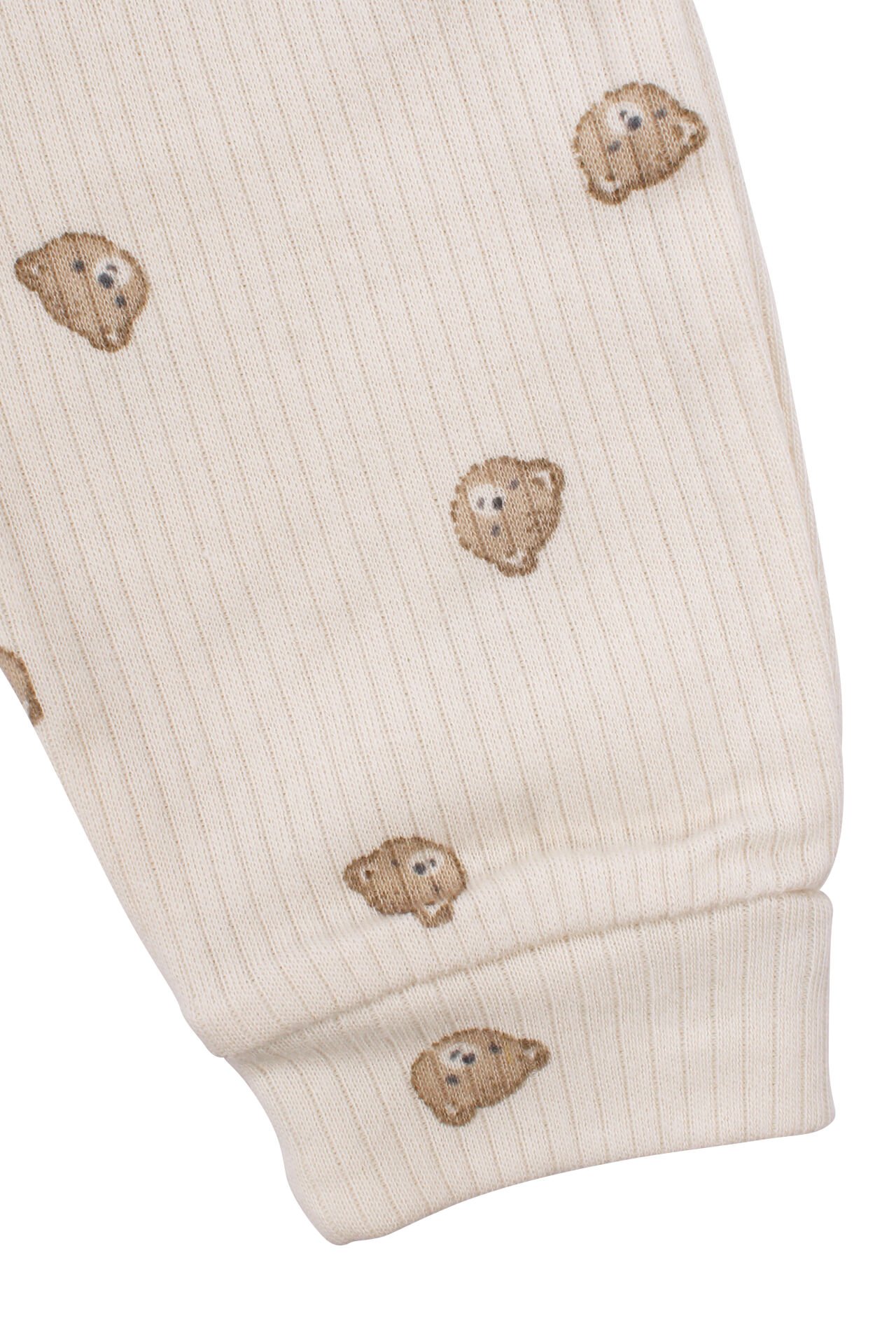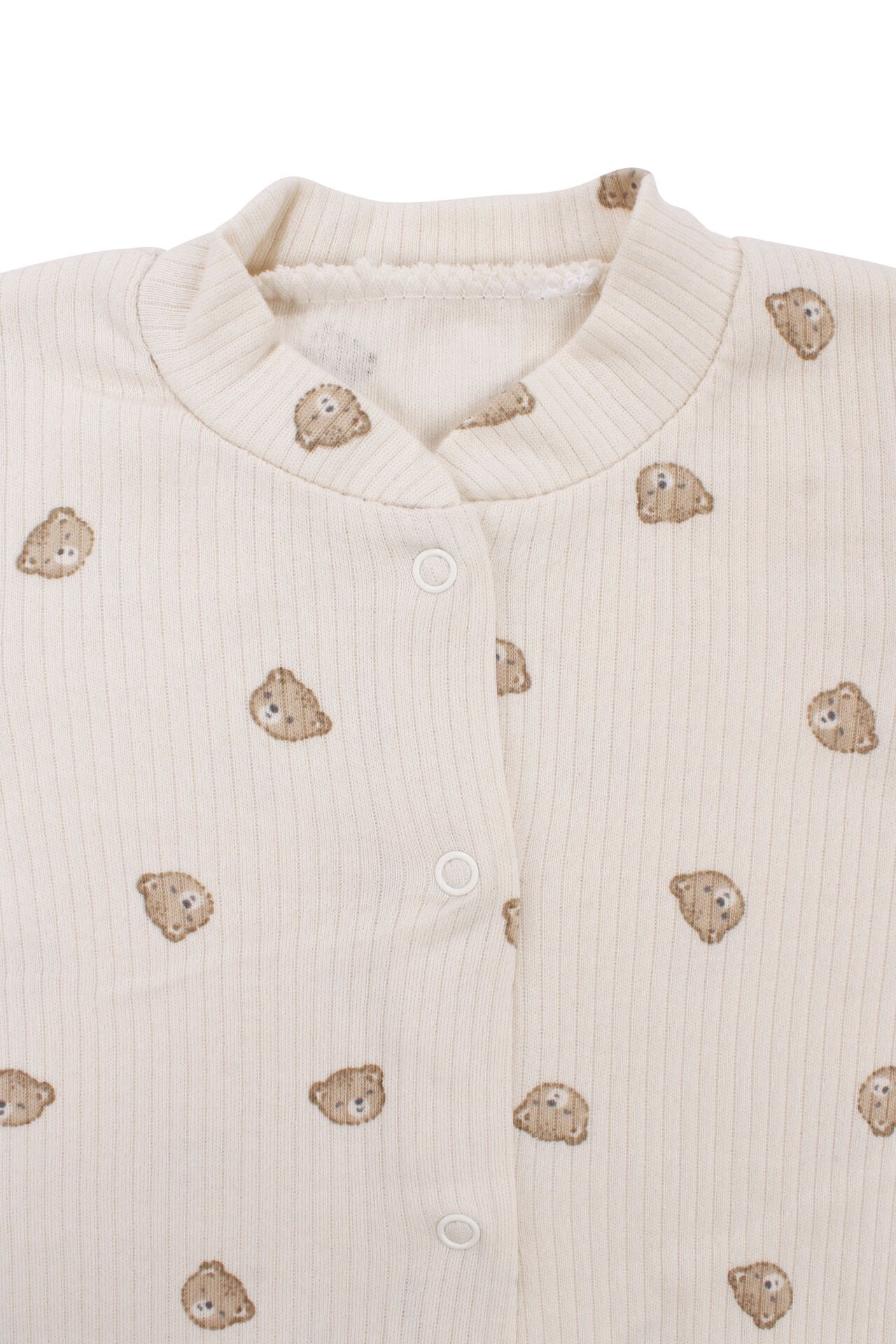 Unisex Ekru Bej Ayılı Desenli Fitilli Manşetli Tulum