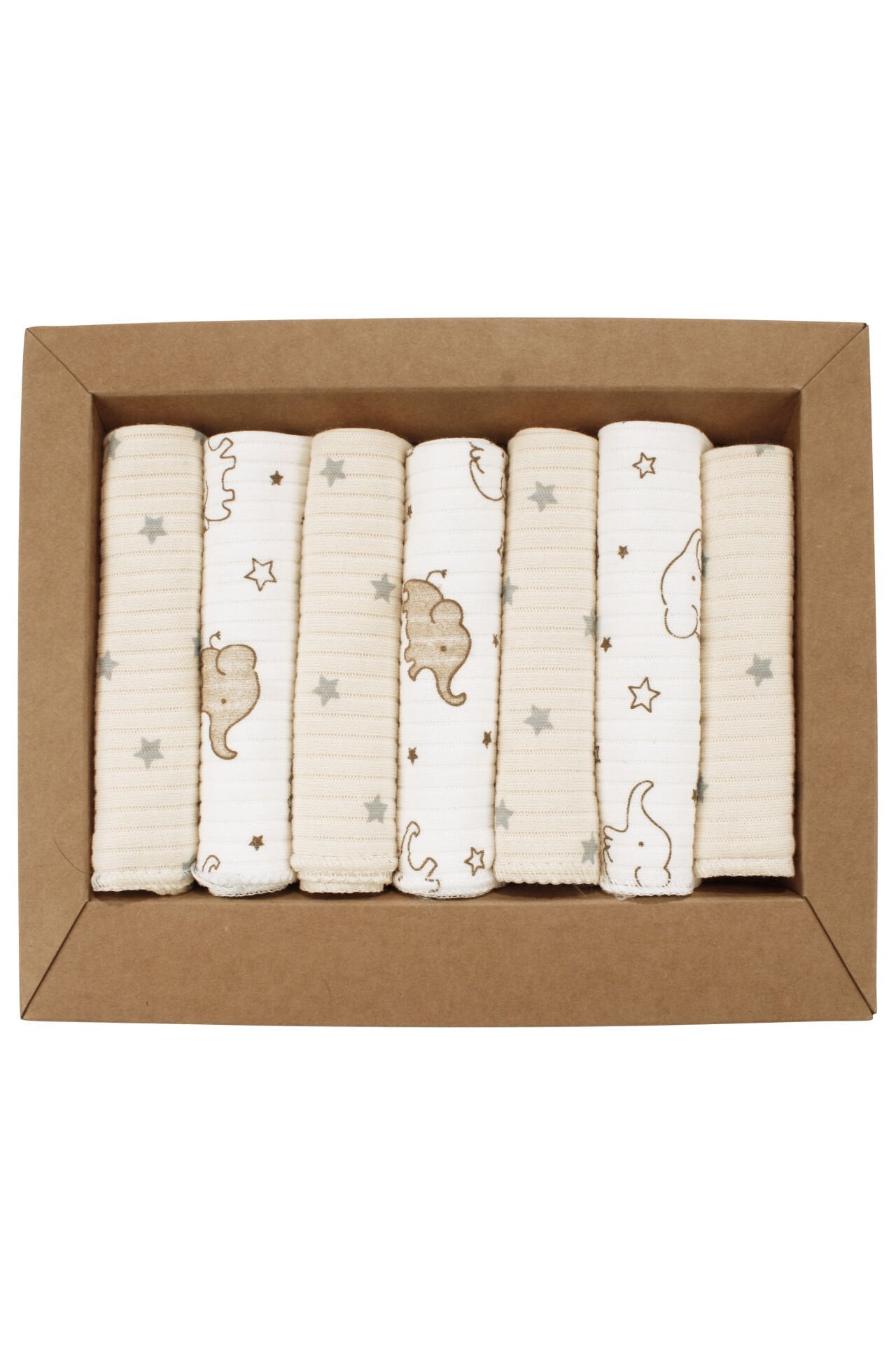 Unisex Ekru Bej Fil Yıldız Desenli Raporlu Organik 7'li Ağız Mendili