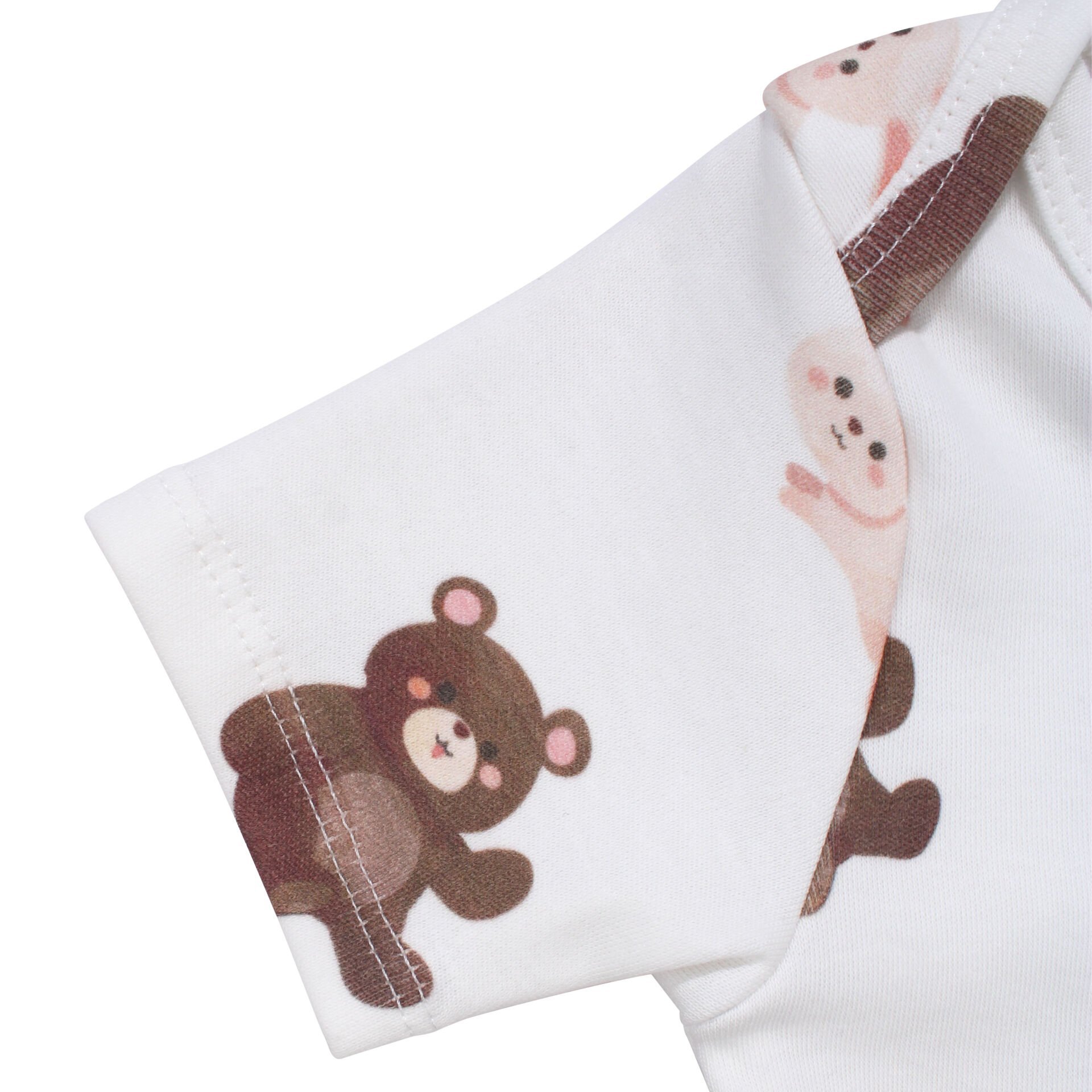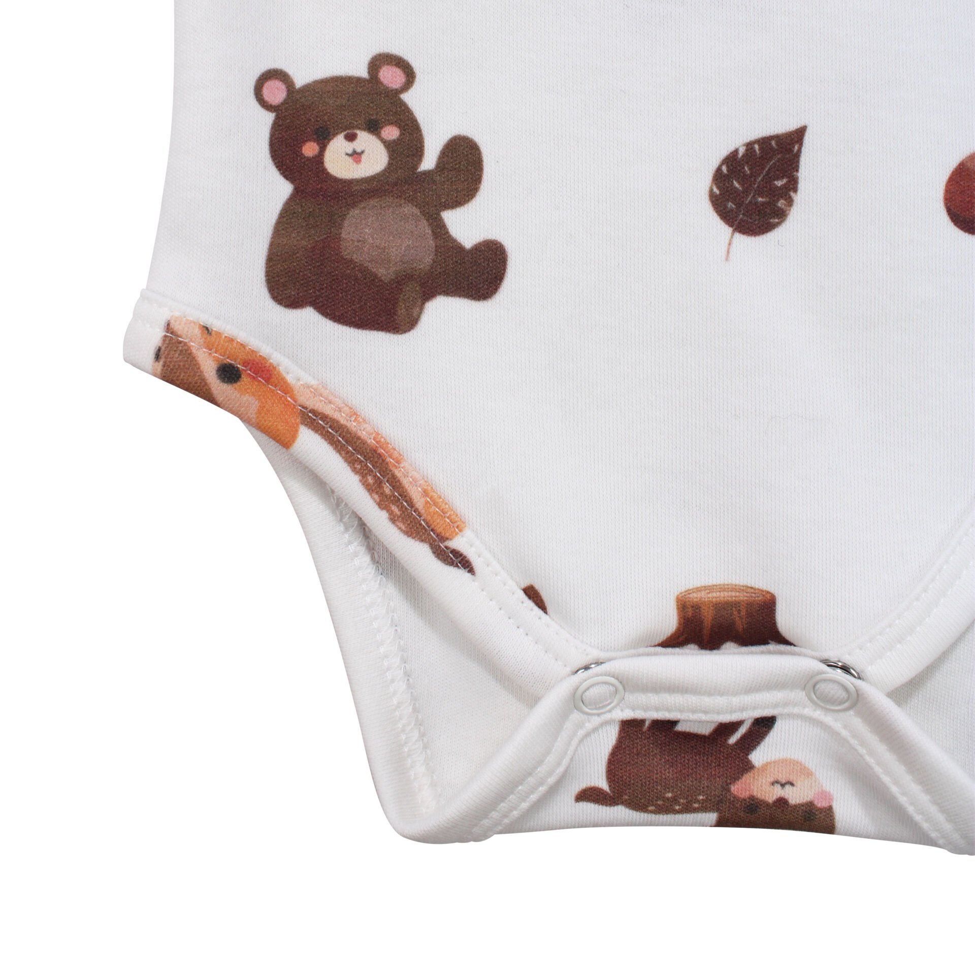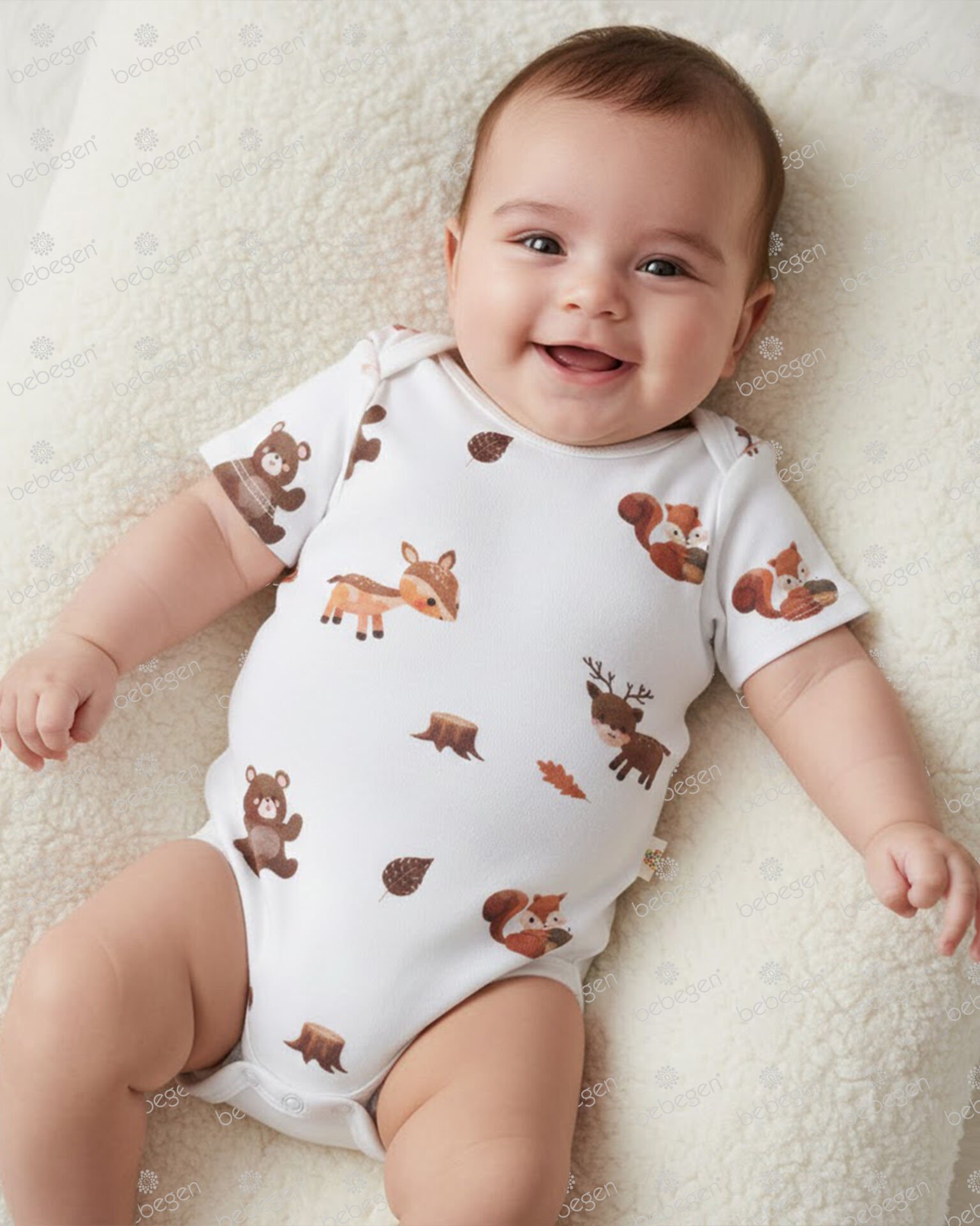 Unisex Ekru Kahve Ceylanlı Desenli Kısa Kol Body Zıbın