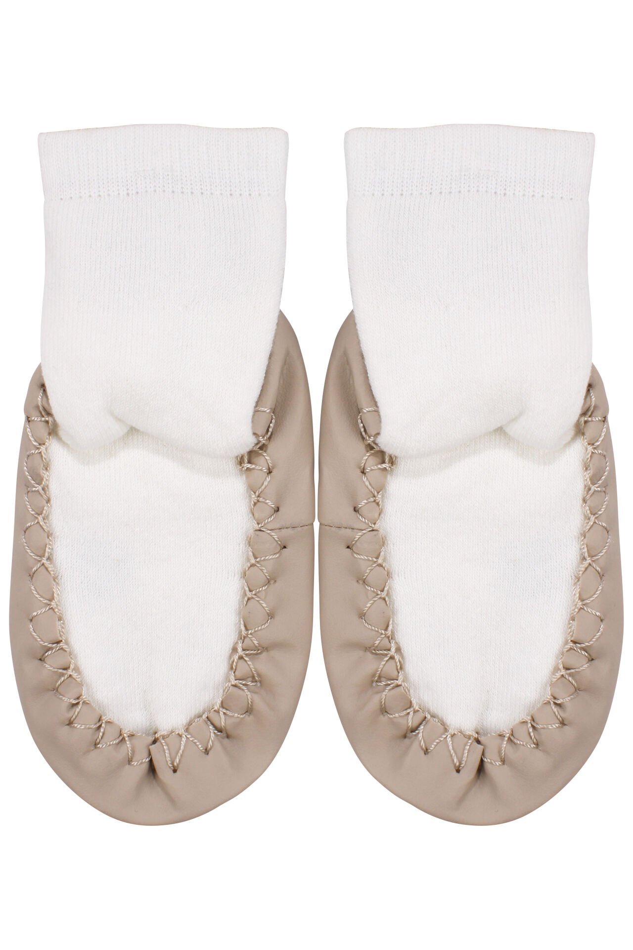 Unisex Ekru Kahve Düz Çarık Çorap