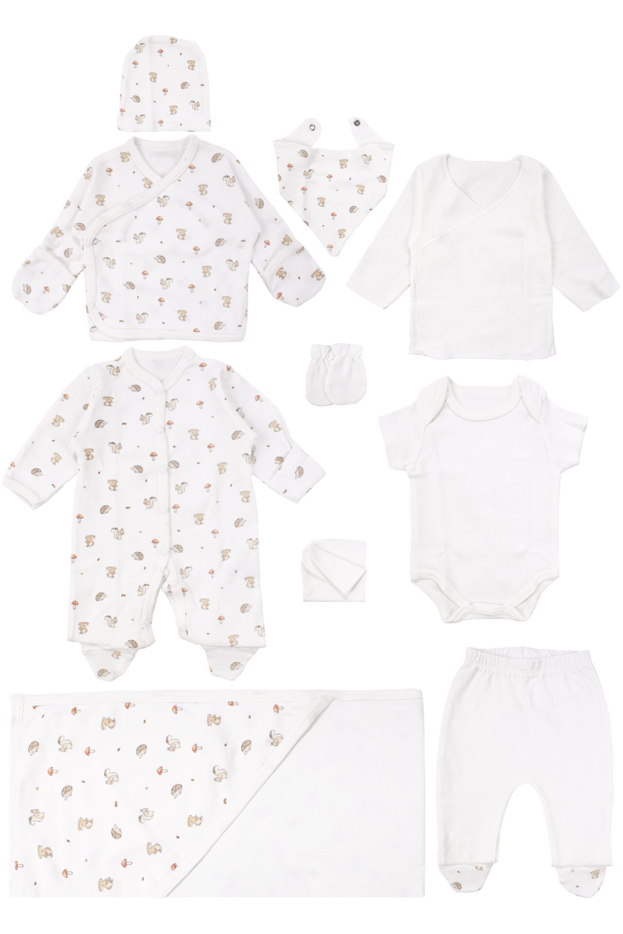 Unisex Ekru Kahve Tavşan Ve Sincap Desenli 10 Parça Hastane Çıkışı