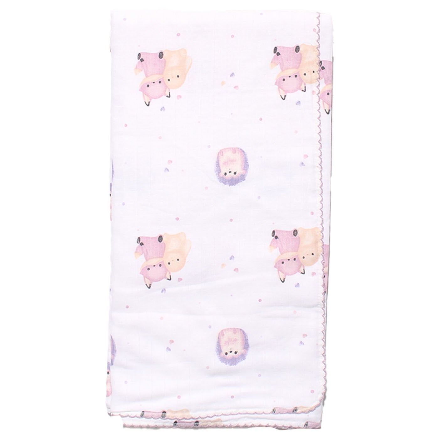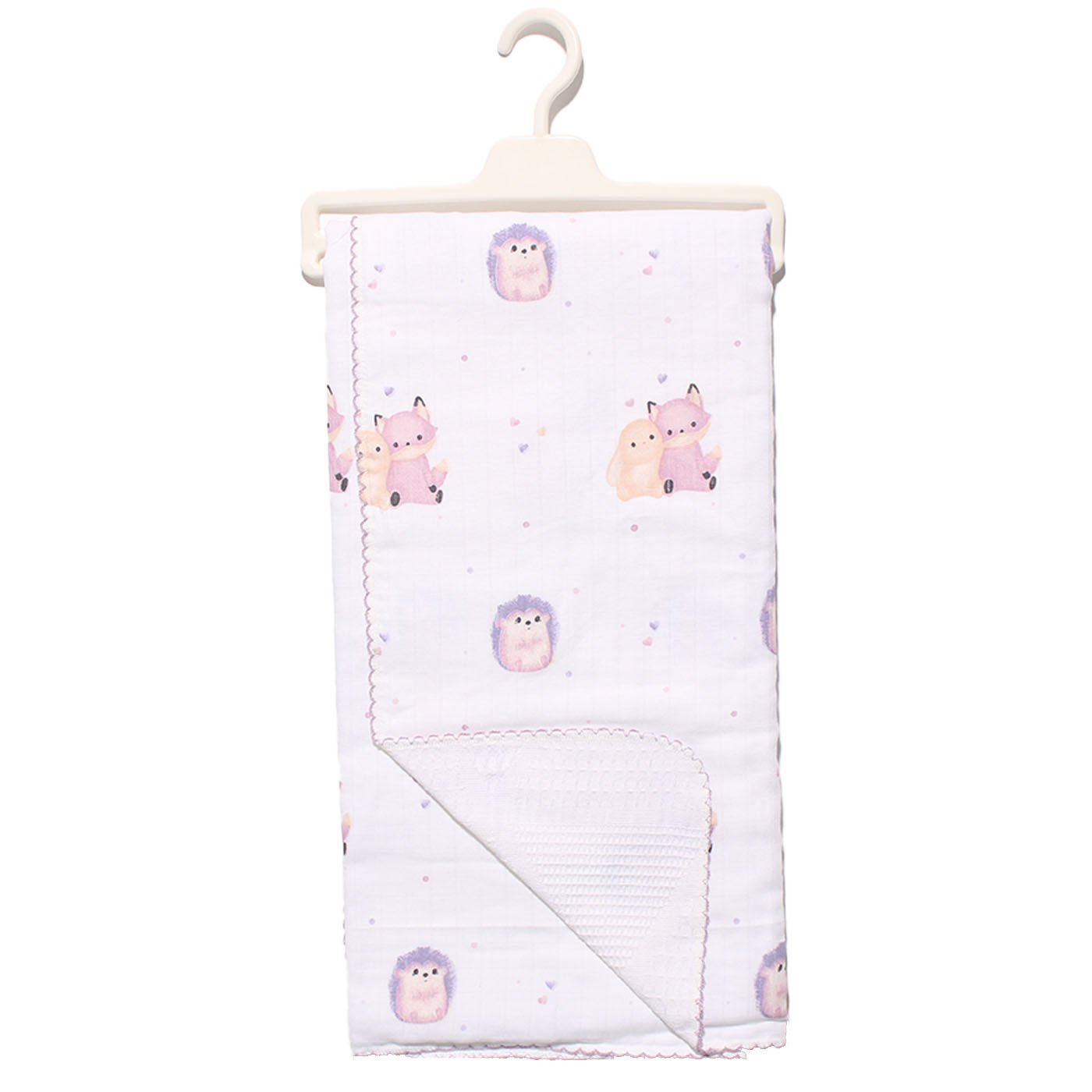 Unisex Ekru Pembe Mor Biyeli Kirpili Tilkili Desenli Pikeli Müslin Battaniye 80x90