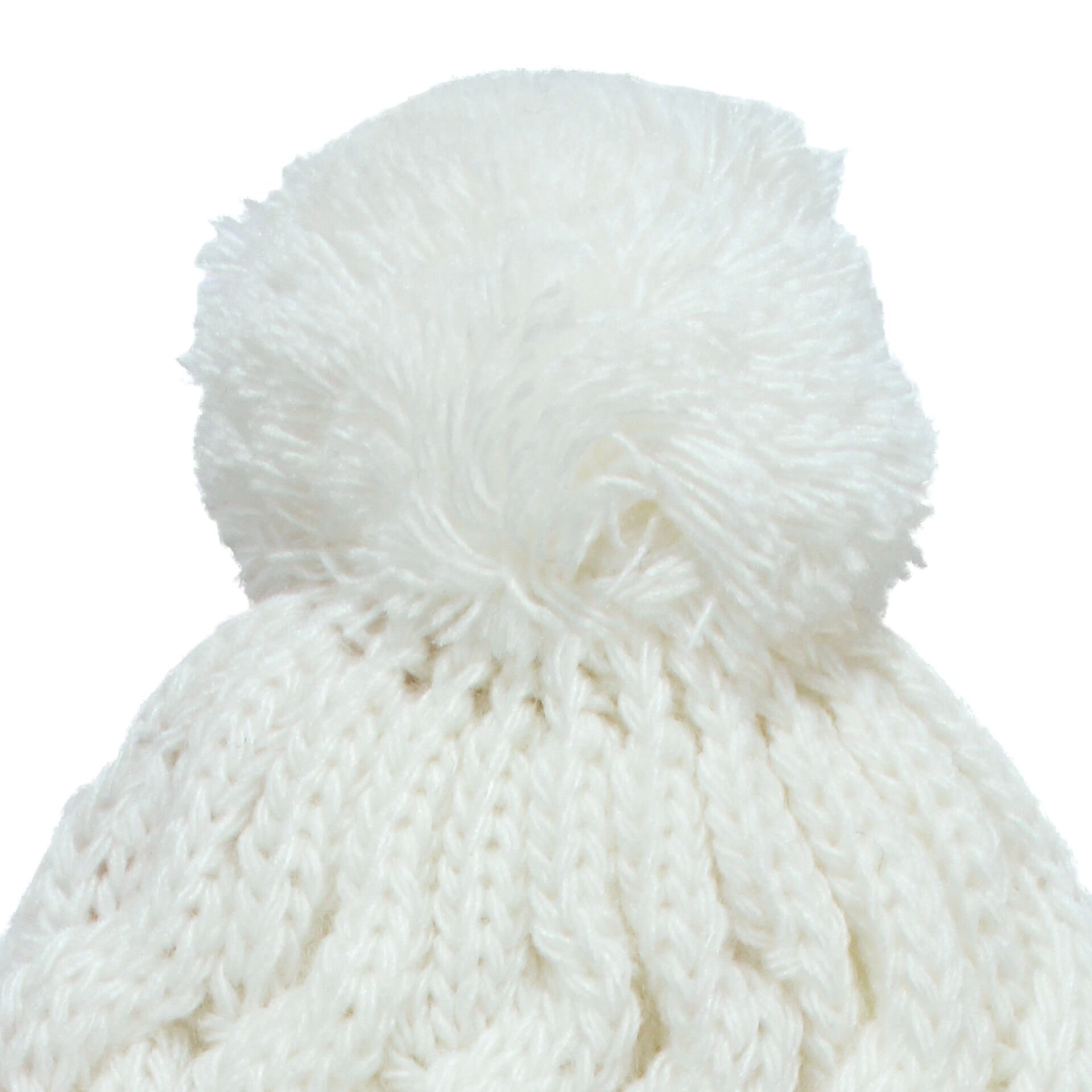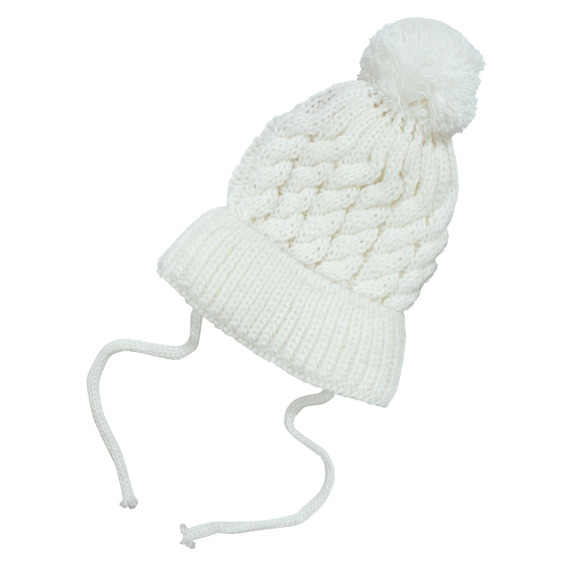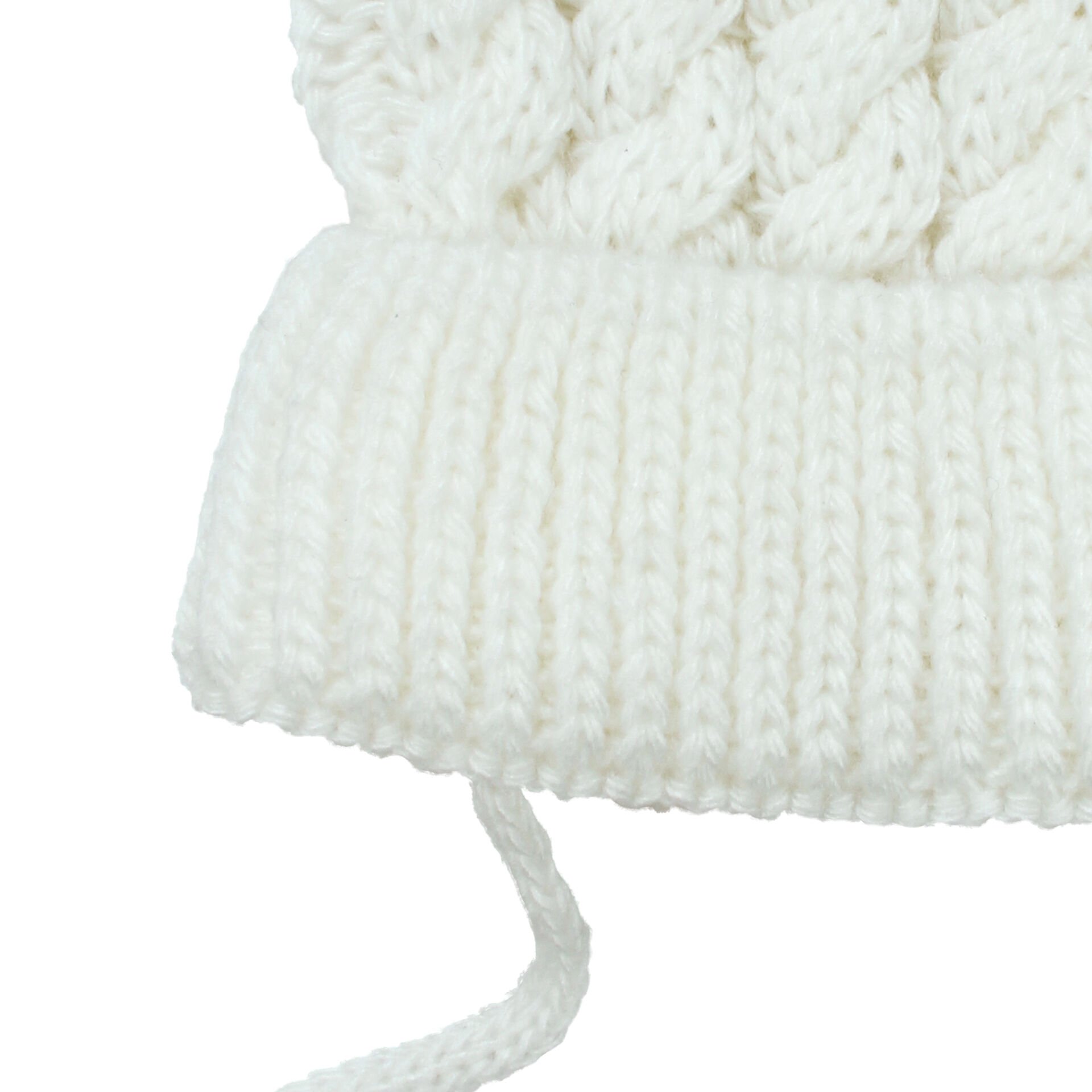 Unisex Ekru Saç Örgülü Ponponlu İpli Triko Bere 0-6 Ay