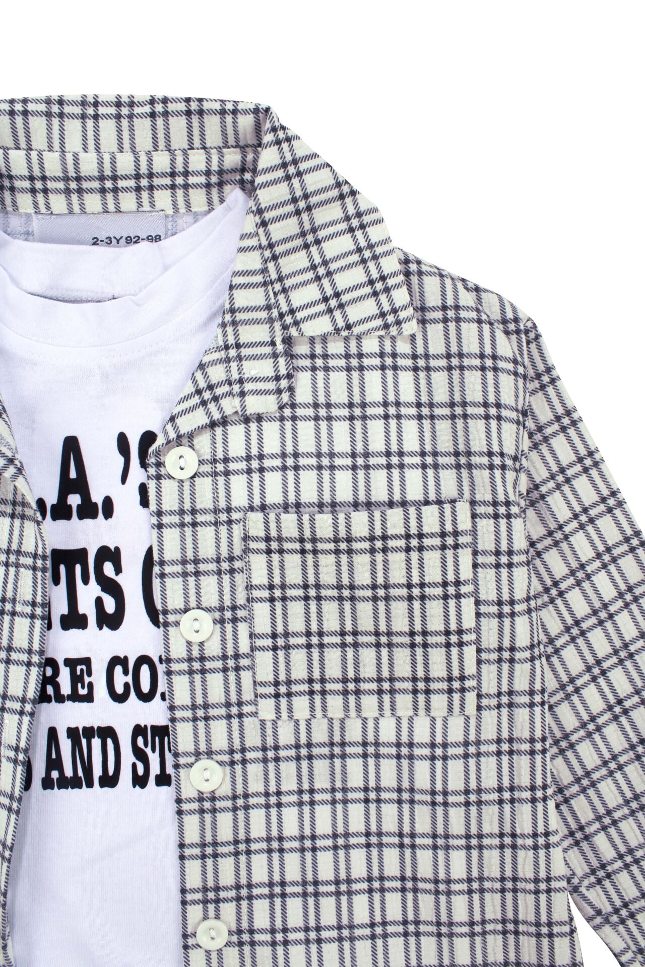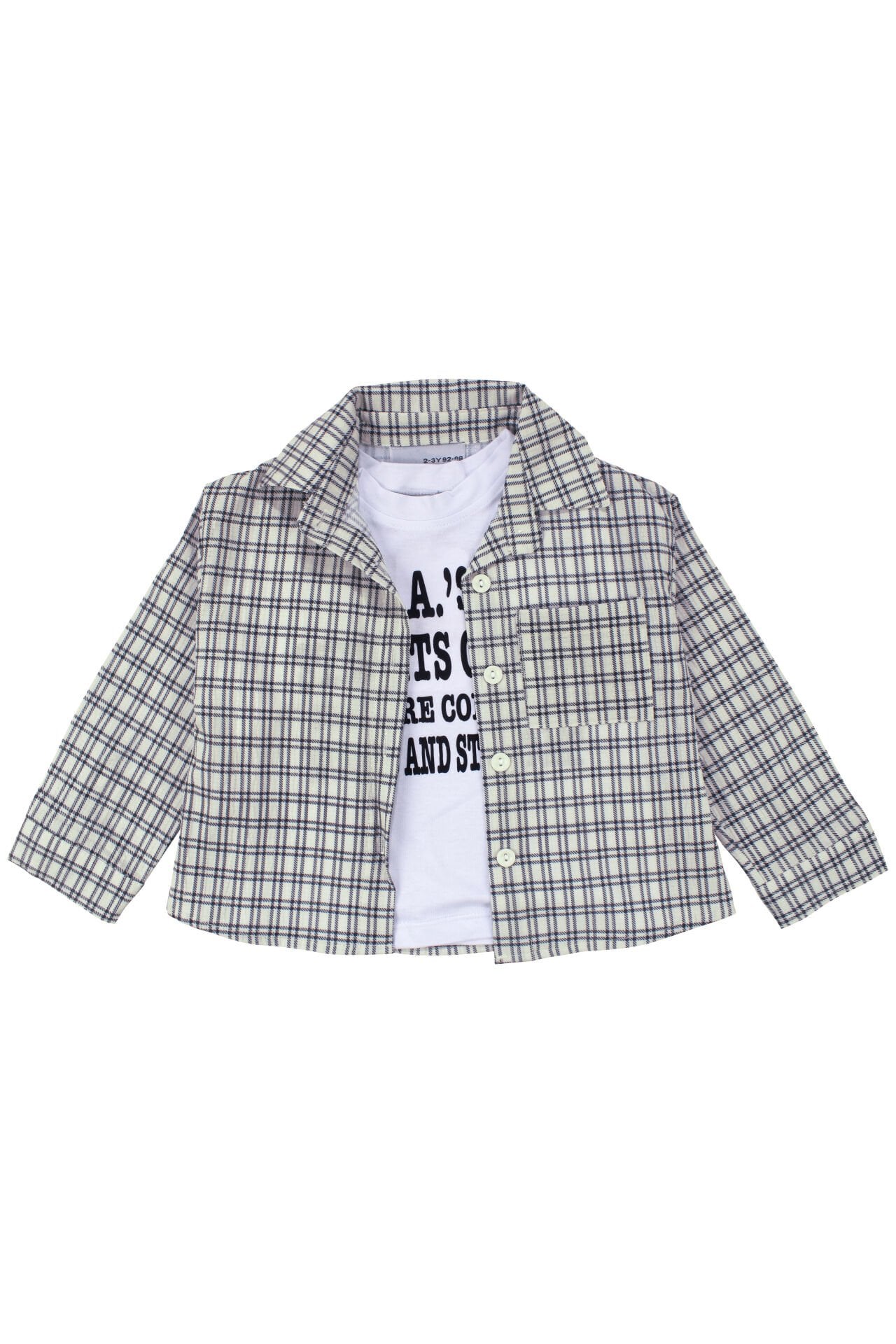 Unisex Ekru Siyah Ekoseli Gömlekli Şortlu 3'lü Takım