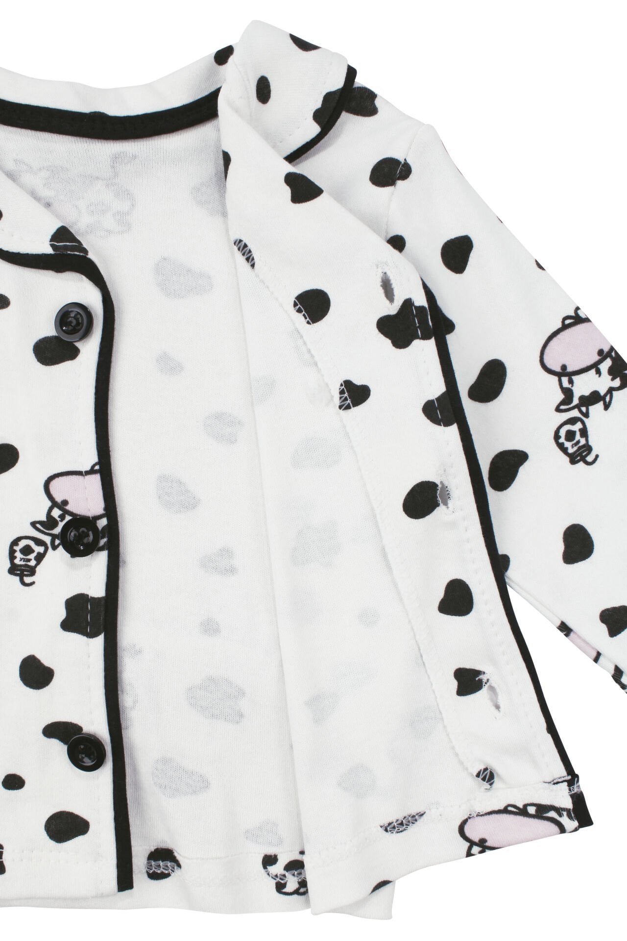 Unisex Ekru Siyah İnek Desenli Kruvaze Yaka Pijama Takımı