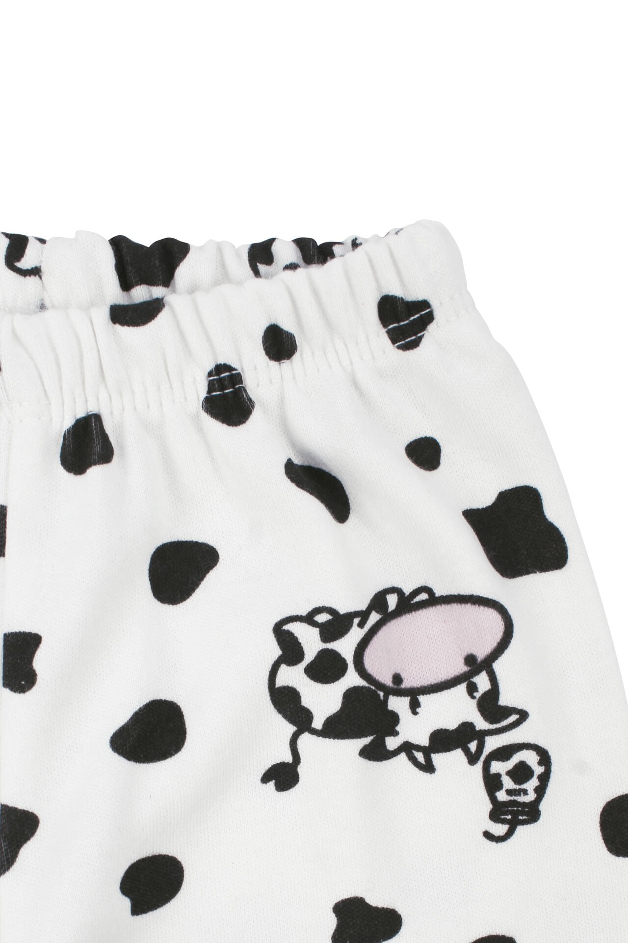 Sevimli ve rahat tasarımıyla öne çıkan bu pijama takımı, ekru zemin üzerine uygulanan siyah inek desenleri ile dikkat çekici bir görünüm sunar. Üst bölümde yer alan kruvaze yaka tasarımı, ürüne farklı ve şık bir detay kazandırırken aynı zamanda bütüncül bir stil oluşturur. Unisex yapısı sayesinde hem kız hem erkek çocuklar için tercih edilebilir.