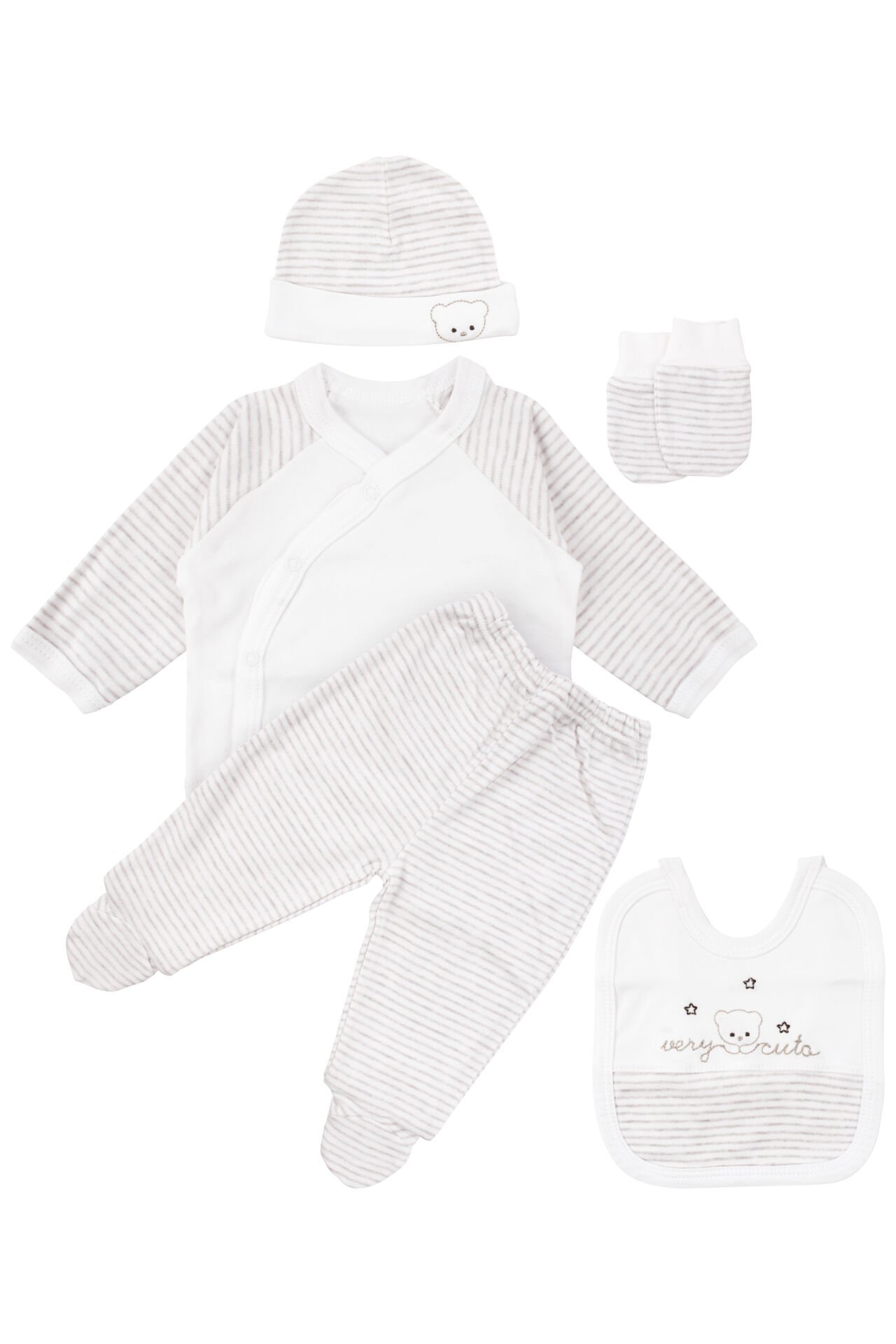 Unisex Ekru Very Cute Nakışlı 5 Parça Organik Hastane Çıkış Seti