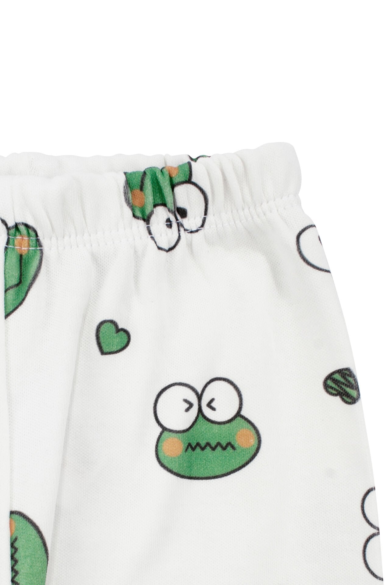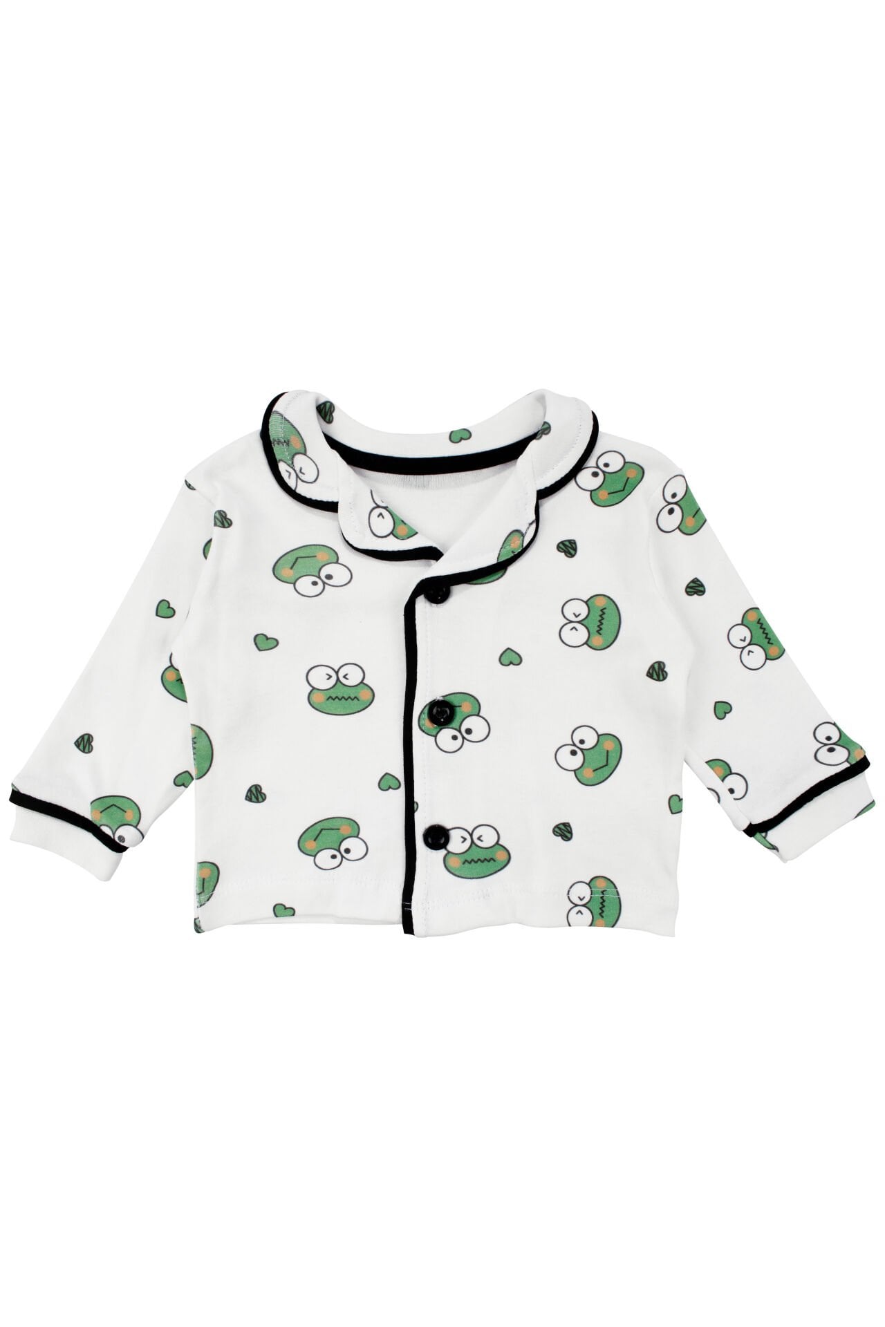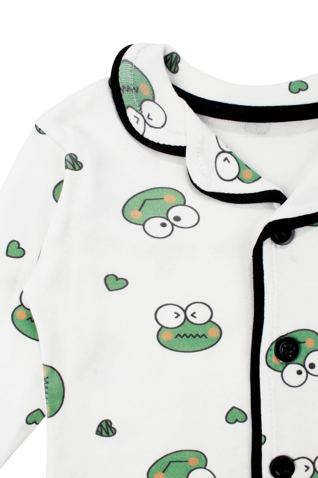 Unisex Ekru Yeşil Kurbağa Desenli Kruvaze Yaka Pijama Takımı