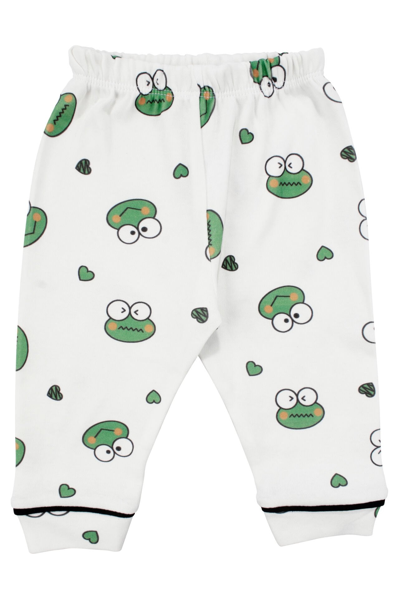 Sevimli ve enerjik tasarımıyla öne çıkan bu pijama takımı, ekru zemin üzerine uygulanan yeşil kurbağa desenleri ile canlı ve dikkat çekici bir görünüm sunar. Üst bölümde bulunan kruvaze yaka detayı, tasarıma farklı ve estetik bir dokunuş kazandırırken takımın bütüncül yapısını tamamlar. Unisex formu sayesinde hem kız hem erkek çocuklar için tercih edilebilir.