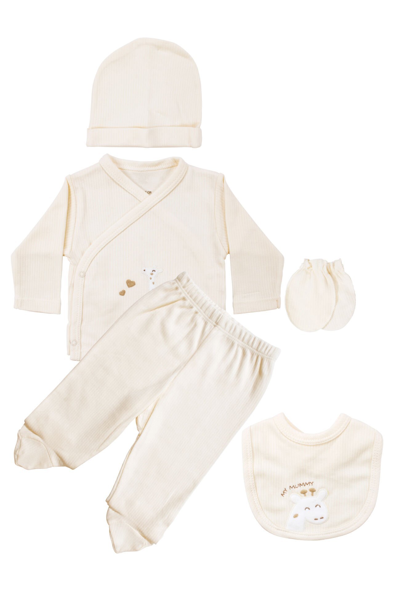 Unisex Ekru Zürafa Nakışlı 5 Parça Hastane Çıkış Seti