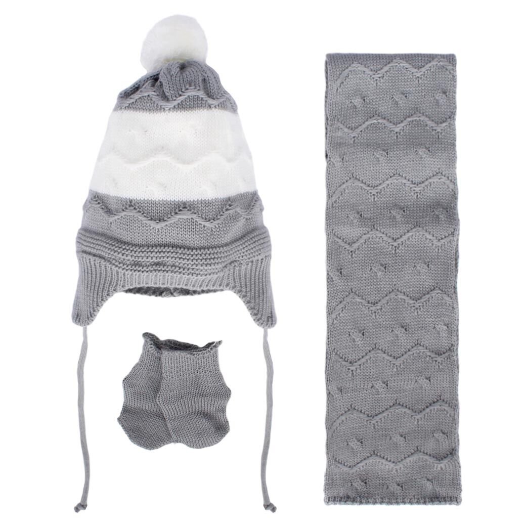 Unisex Gri Beyaz Dalga Desenli Triko Atkı Bere Set