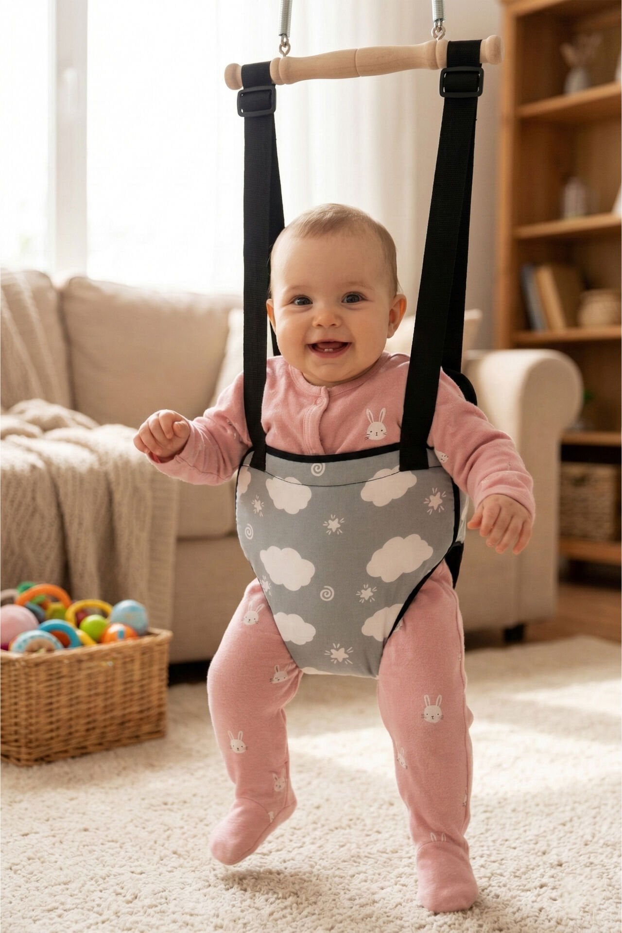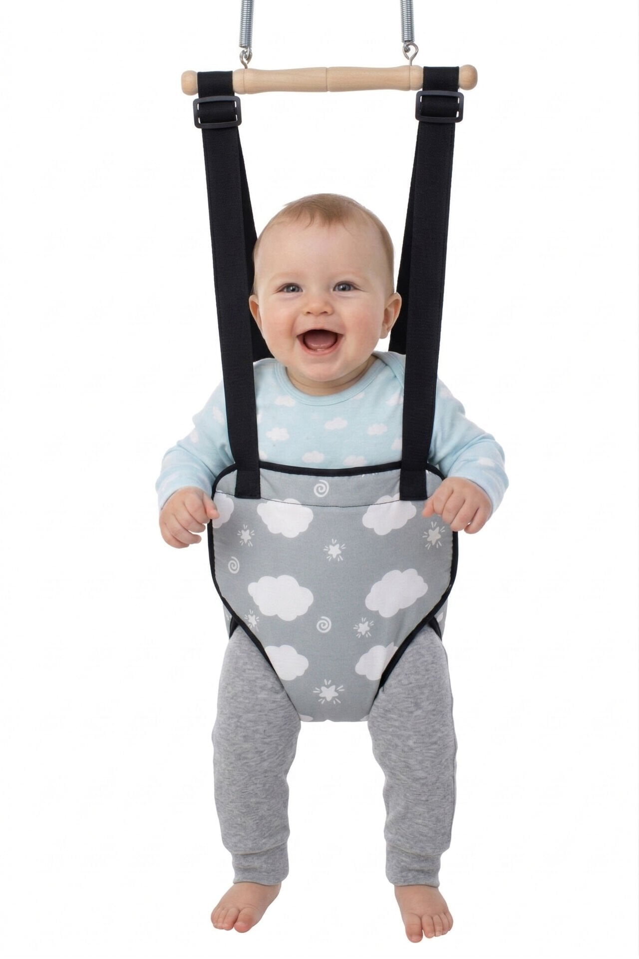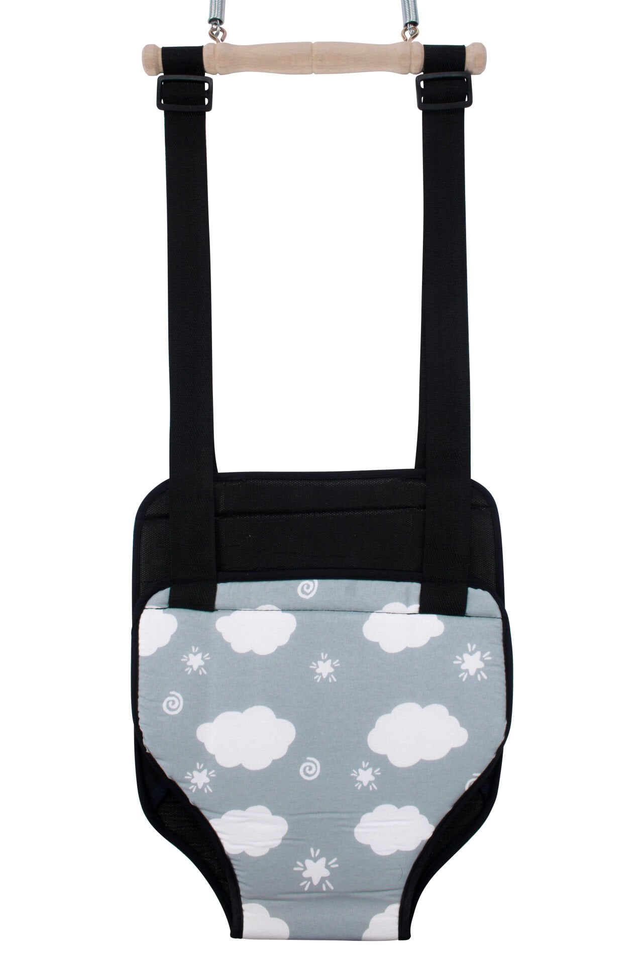Sevimli ve modern tasarımıyla öne çıkan bu hoppala salıncak, gri zemin üzerine uygulanan bulut desenleri ile estetik ve yumuşak bir görünüm sunar. Desenli yüzey tasarıma hoş ve dikkat çekici bir karakter kazandırır.