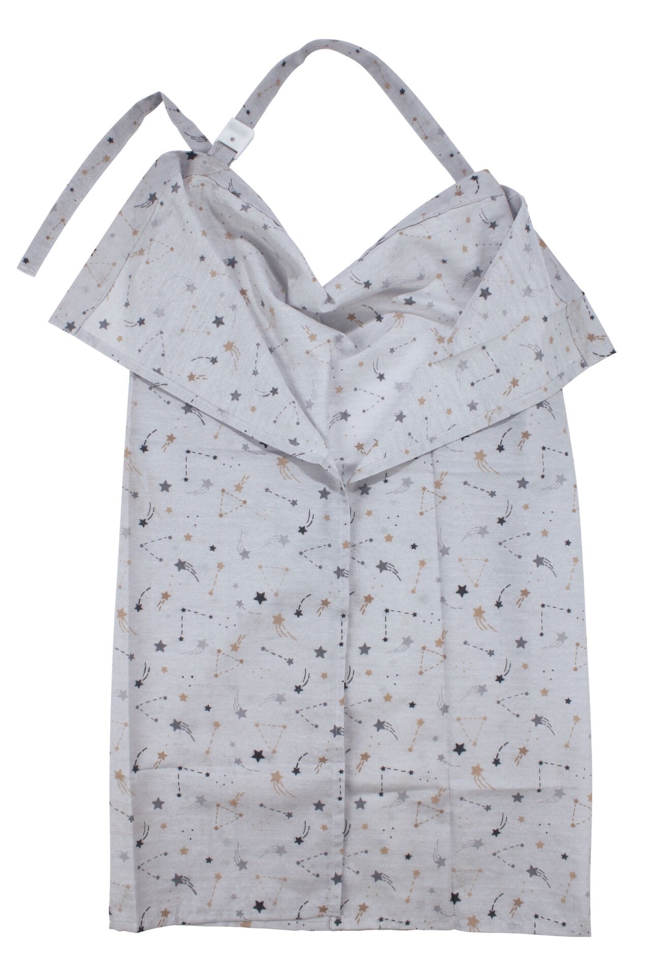 Sade ve modern tasarımıyla öne çıkan bu emzirme önlüğü, gri ve kahve tonlarının uyumunu küçük yıldız desenleri ile tamamlayarak estetik bir stil sunar. Minimal desen yapısı ürüne dengeli ve dikkat çekici bir görünüm kazandırır.