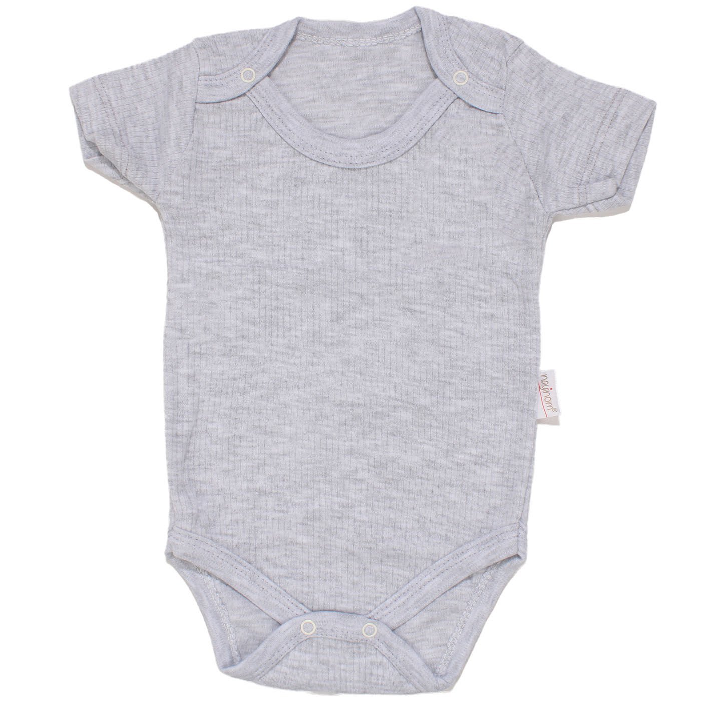 Unisex Gri Raporlu Kısa Kol Çıt Çıtlı Body Zıbın