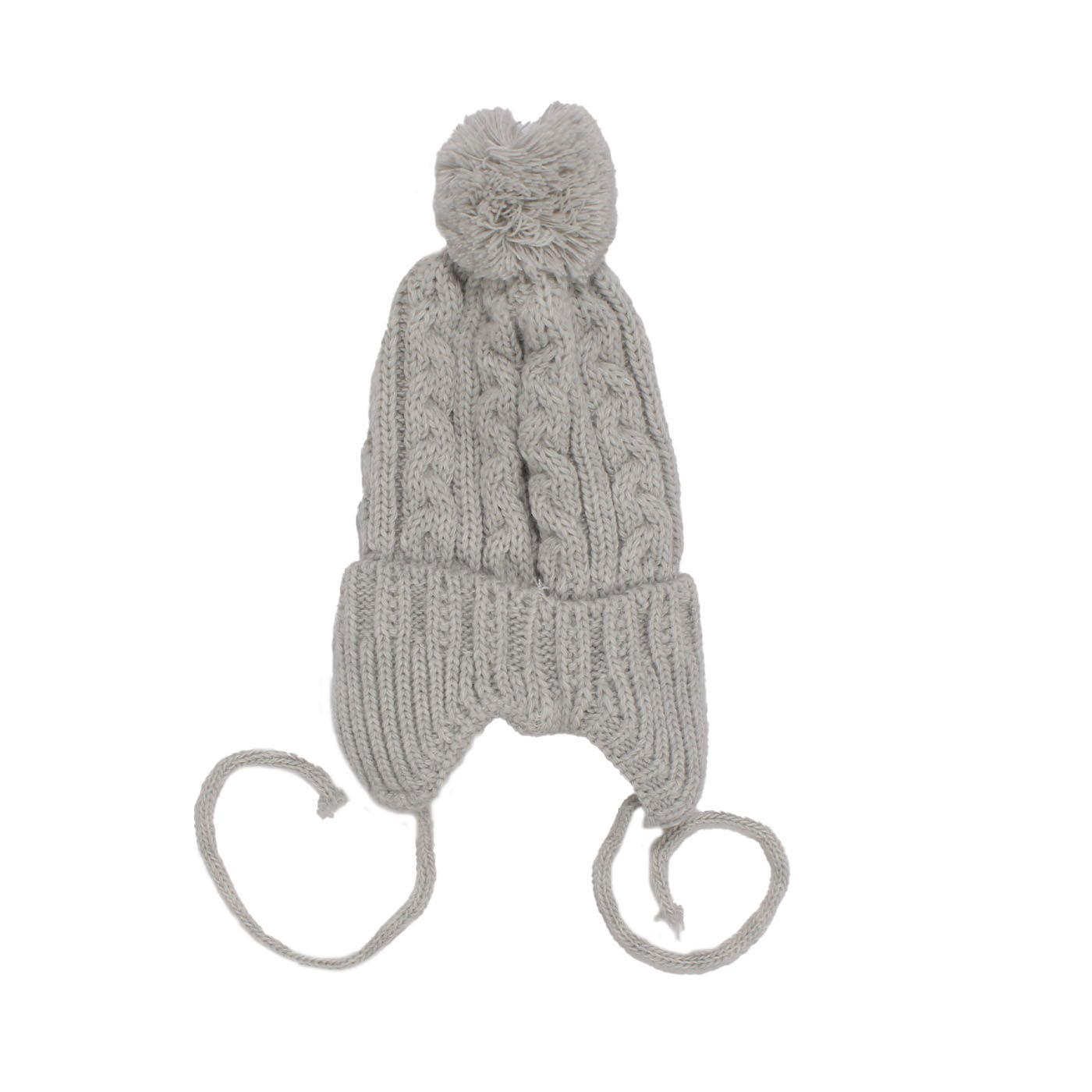 Unisex Gri Triko Tek Kulaklı İpli Bere 0-1 Yaş