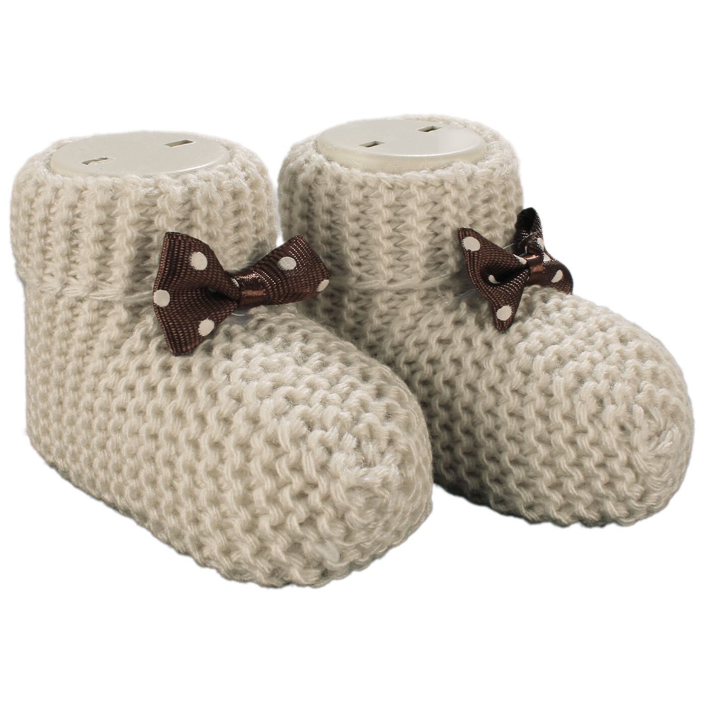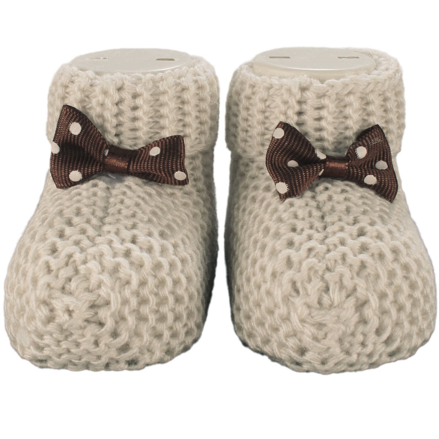 Unisex Kahverengi Puanlı Fiyonklu Triko Patik 0-6 Ay