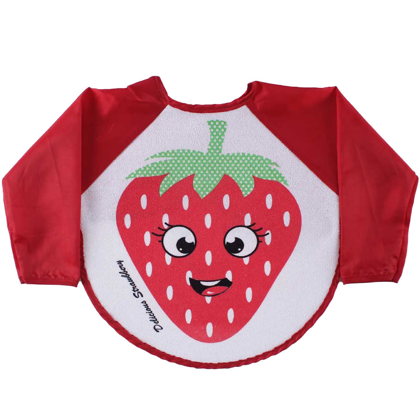 Unisex Kırmızı Çilek Desenli Uzun Kollu Önlük