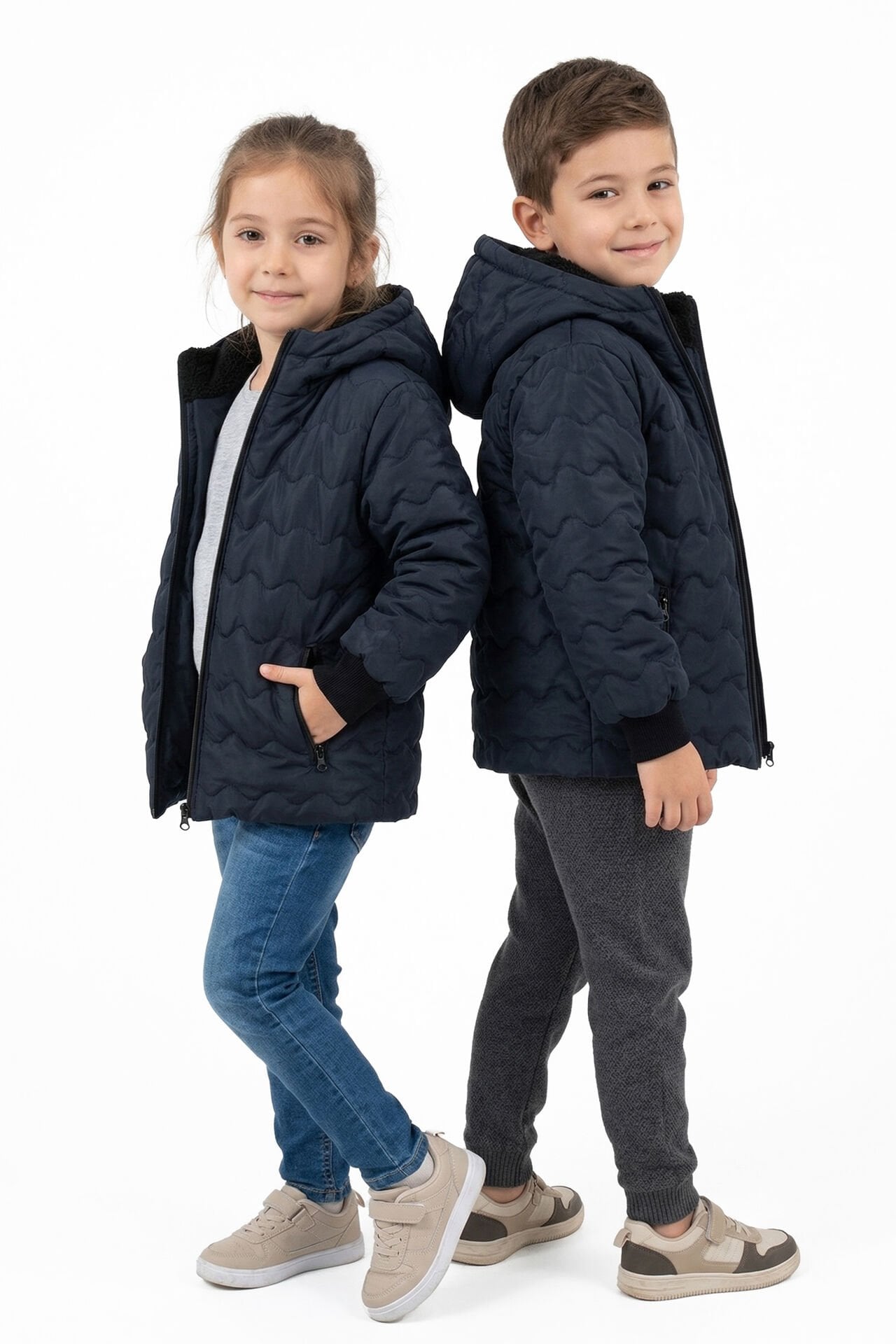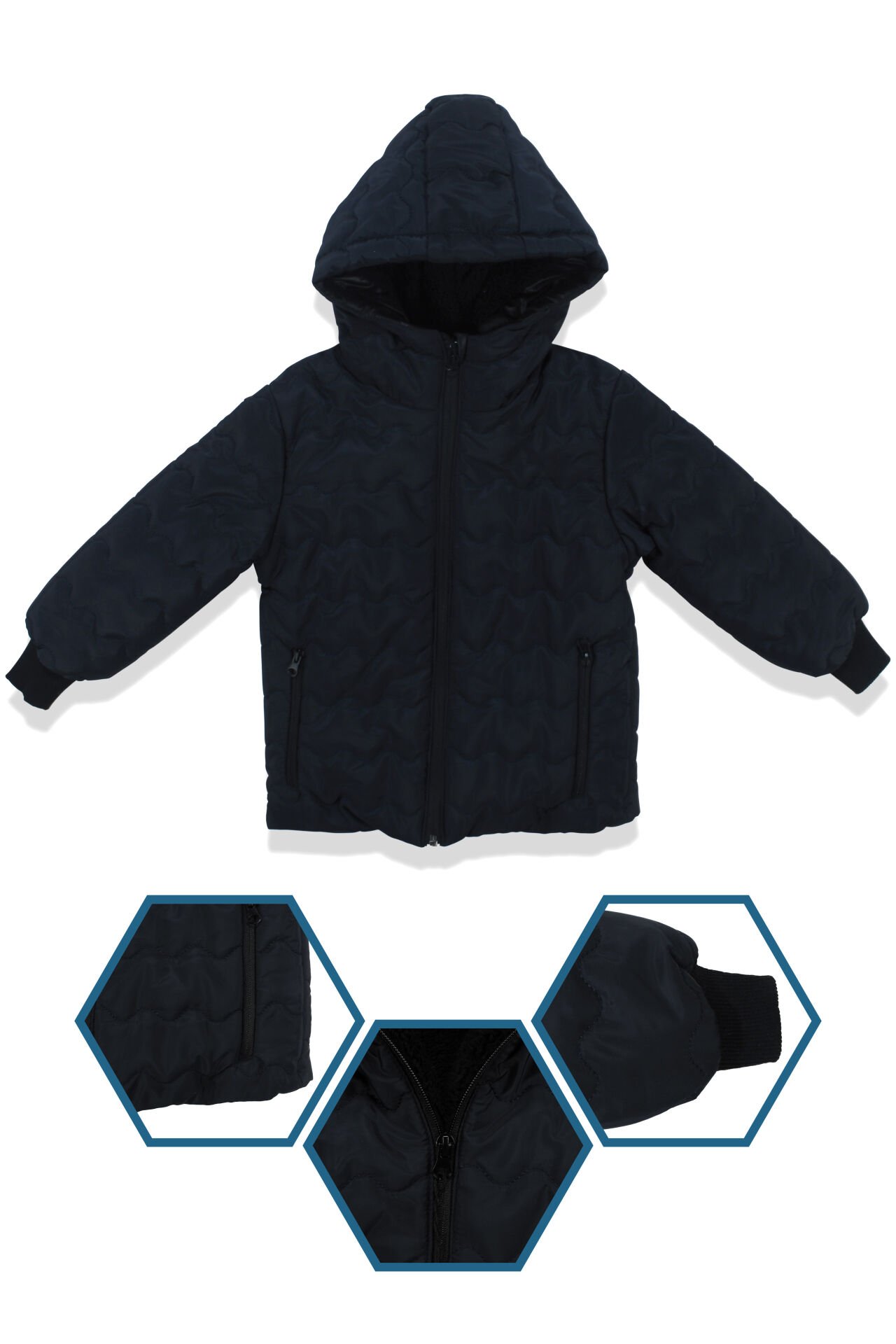 Unisex Lacivert İçi Peluş Kapitoneli Mont