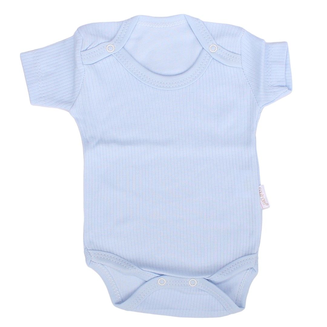 Unisex Mavi Raporlu Kısa Kol Çıtçıtlı Body Zıbın
