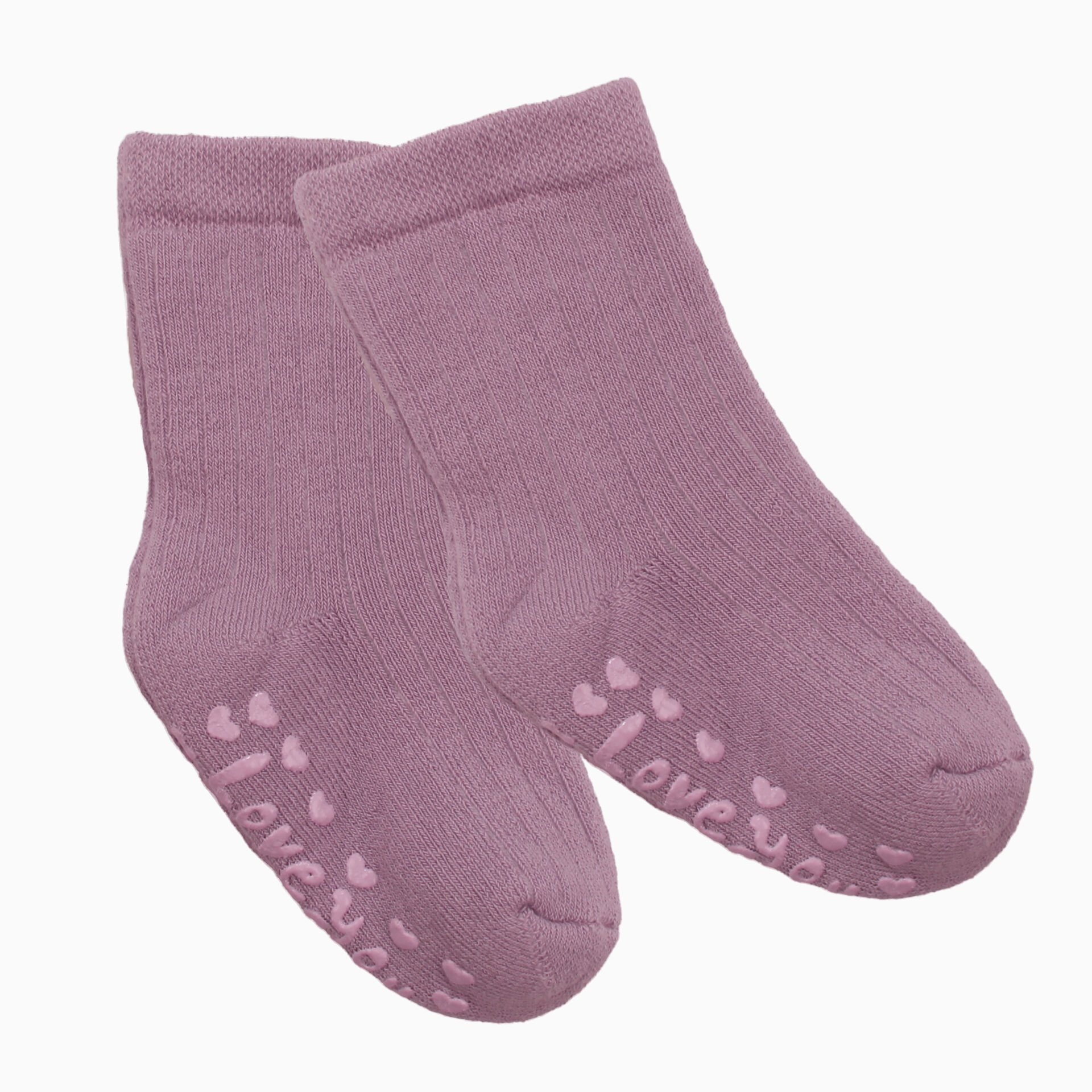 Unisex Mor Love Kaydırmaz Taban Polar Çorap