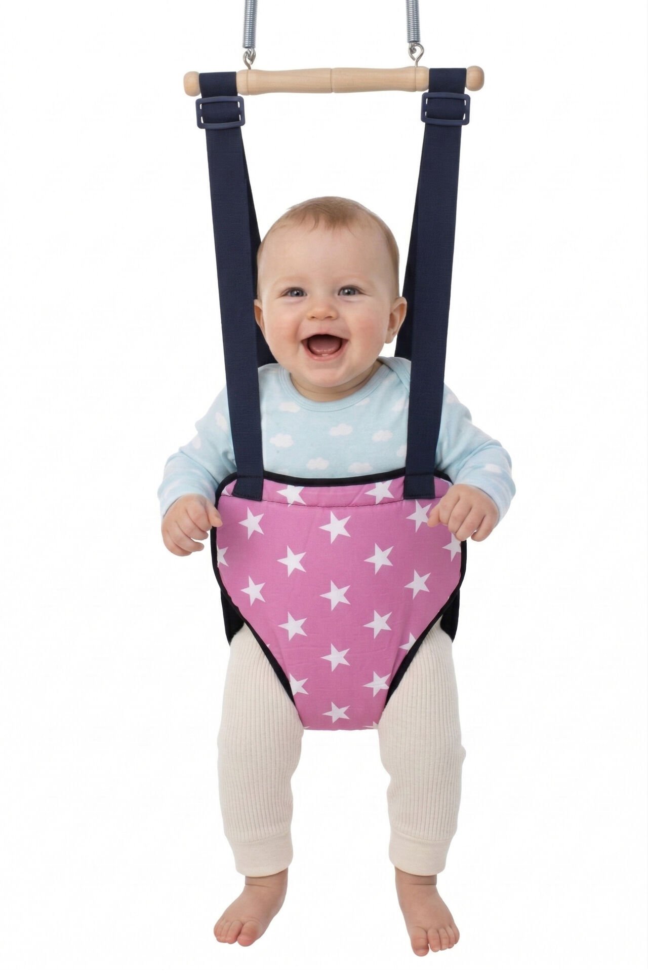 Canlı ve sevimli tasarımıyla öne çıkan bu hoppala salıncak, pembe zemin üzerine uygulanan yıldız desenleri ile dikkat çekici bir görünüm sunar. Desenli yüzey tasarıma hareketli ve estetik bir karakter kazandırır.