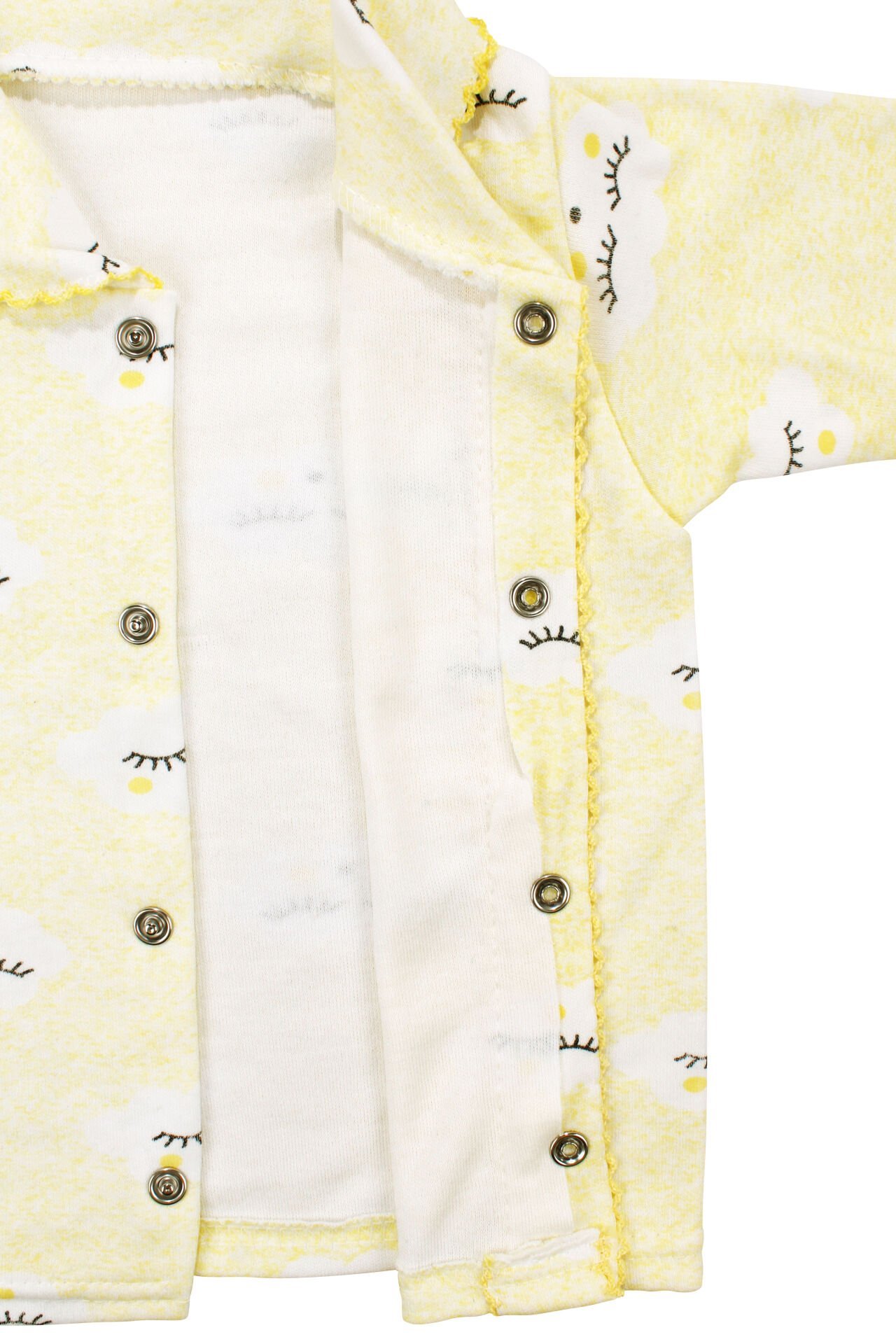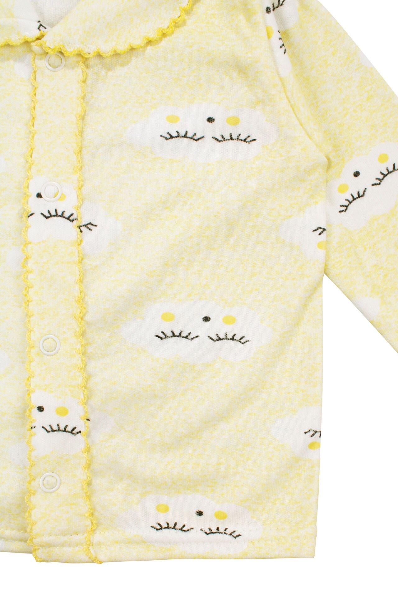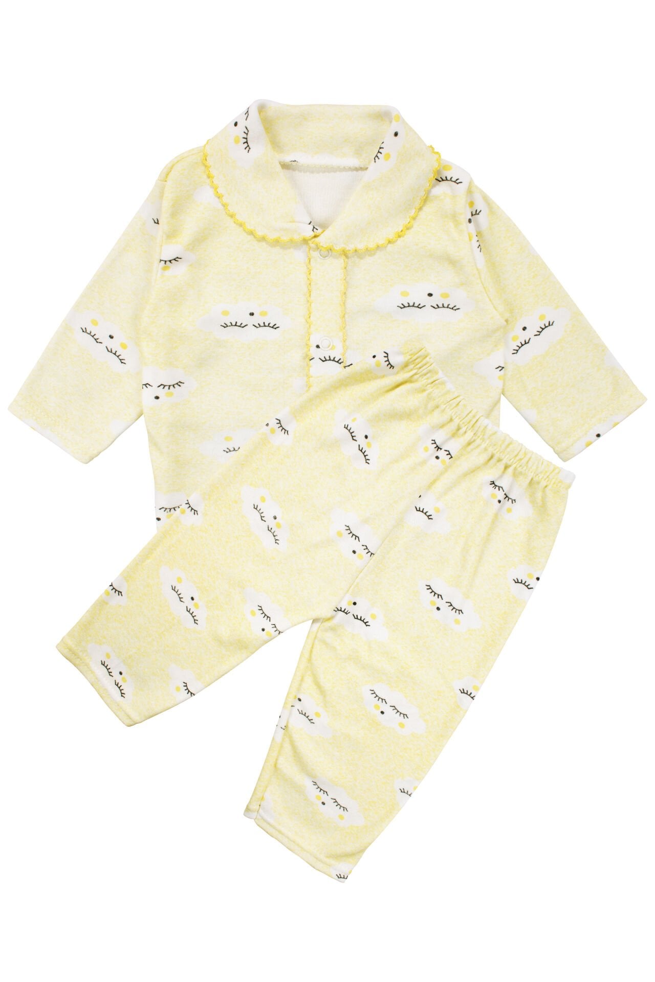 Unisex Sarı Bulut Desenli Biyeli Çıtçıtlı Pijama Takımı 0-3 Ay