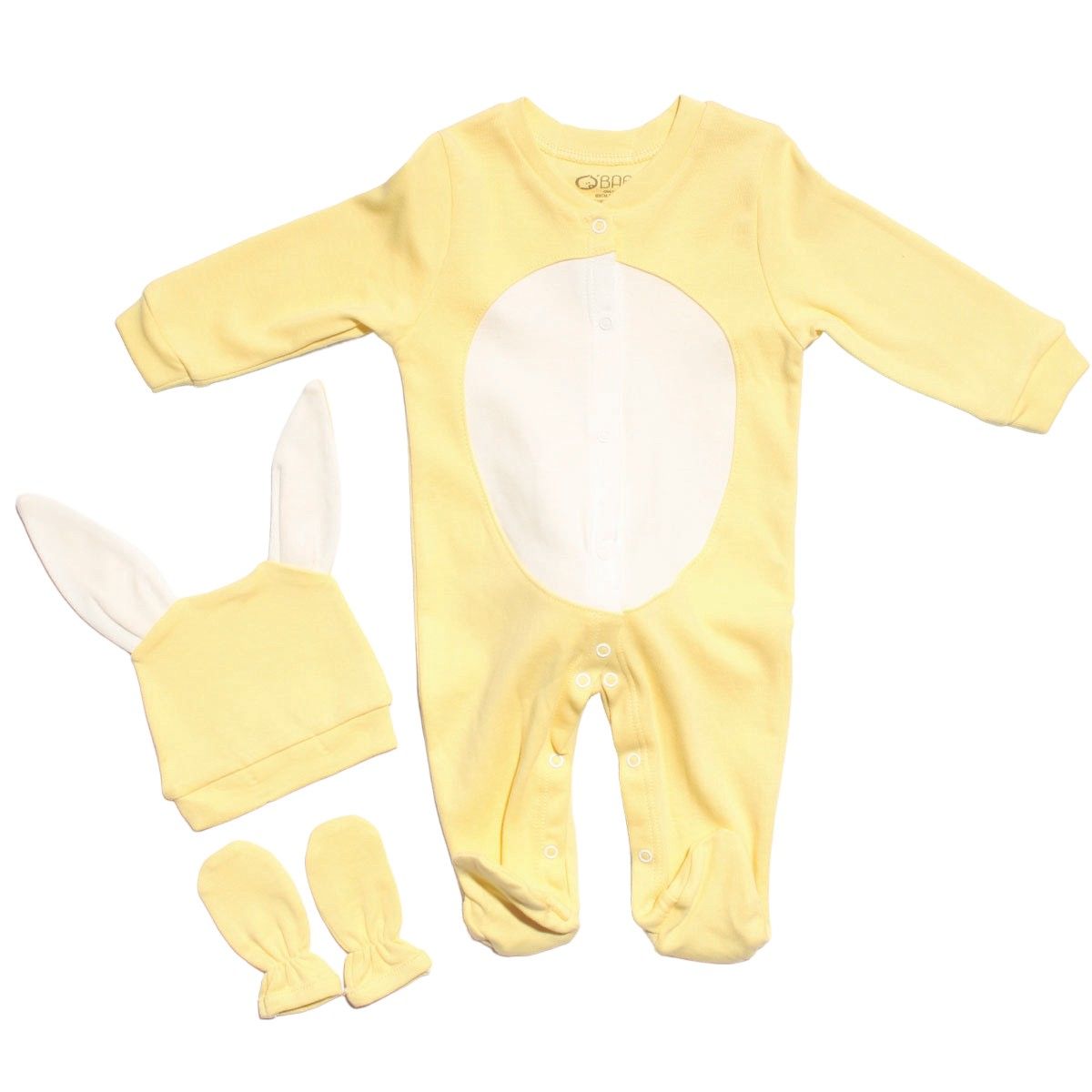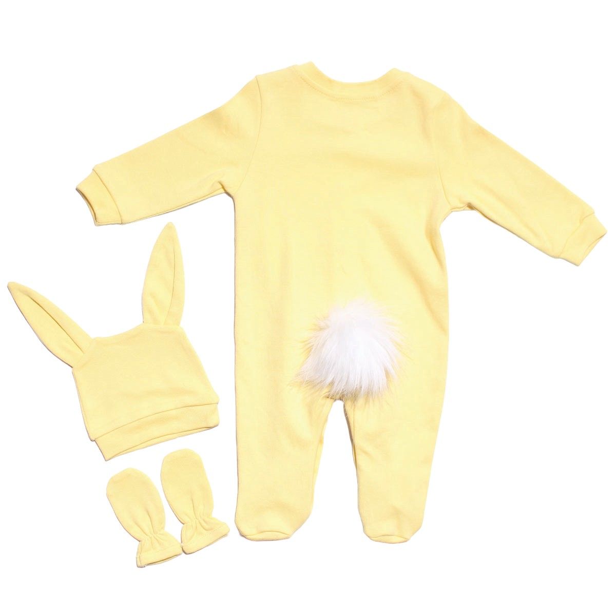 Unisex Sarı Ekru Göbekli Bereli Eldivenli Pomponlu Tavşan Tulum