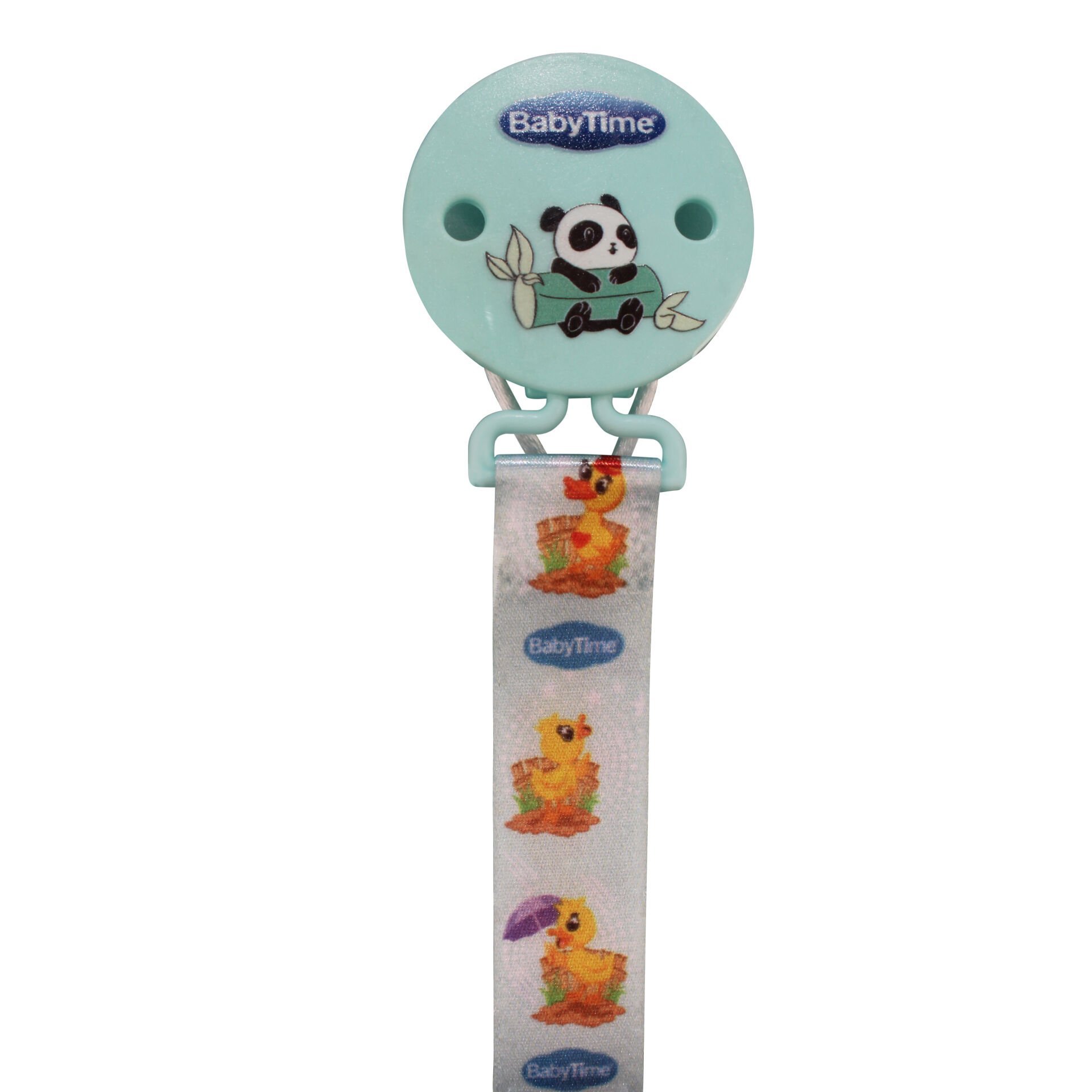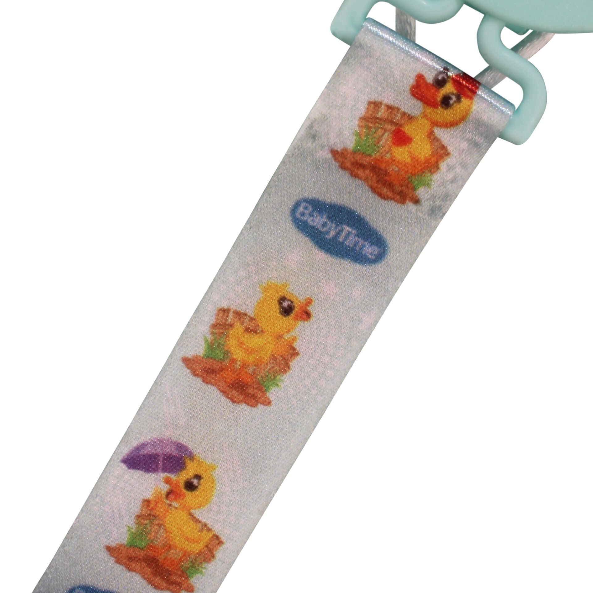 Unisex Su Yeşili Ördek Desenli Kumaş Emzik Askısı